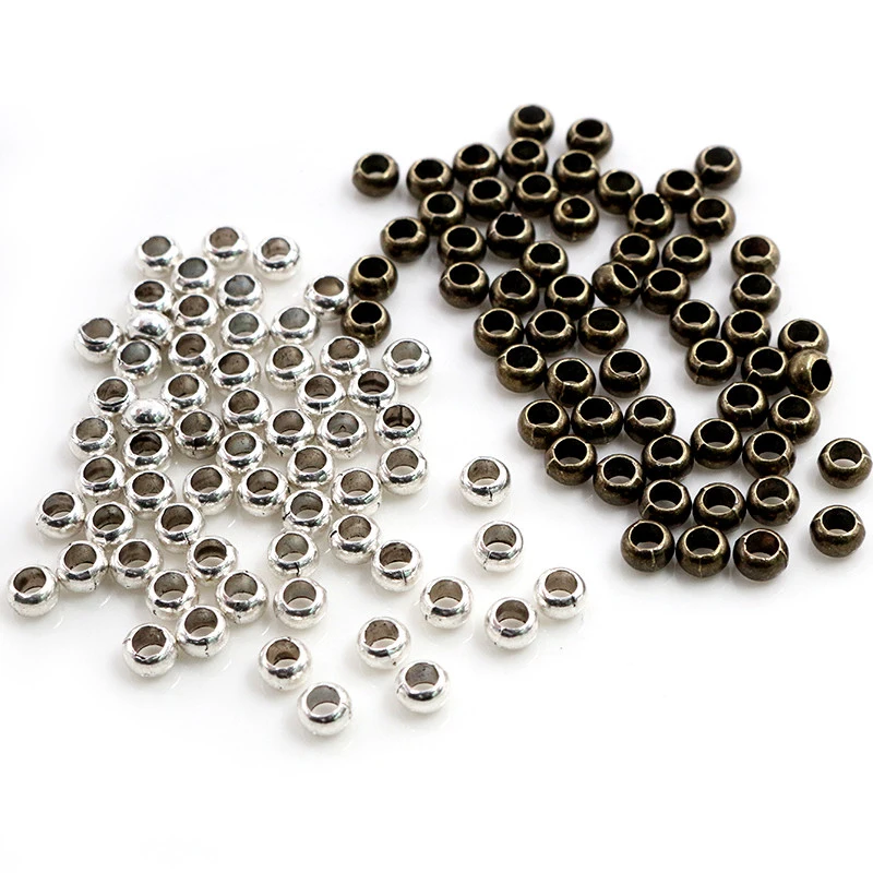 100 шт.лот, античный посеребренный шар, обжимные концевые бусины диаметром 5 мм, разделительные бусины для самостоятельного изготовления ювелирных изделий