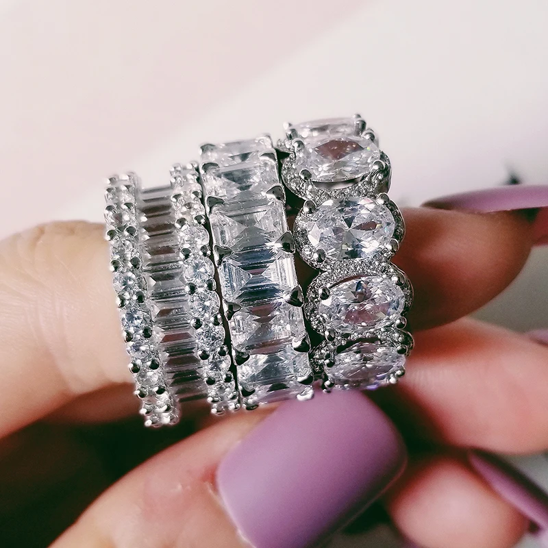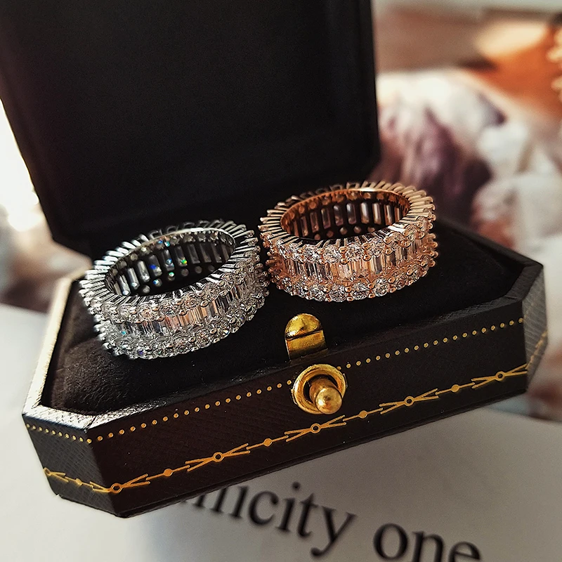 Роскошное серебряное кольцо невесты багет огранка Цирконий Вечность кольцо для женщин Свадьба День Святого Валентина подарок на палец ювелирные изделия R5712