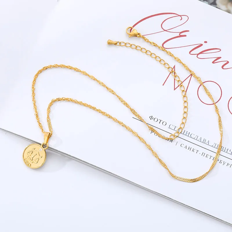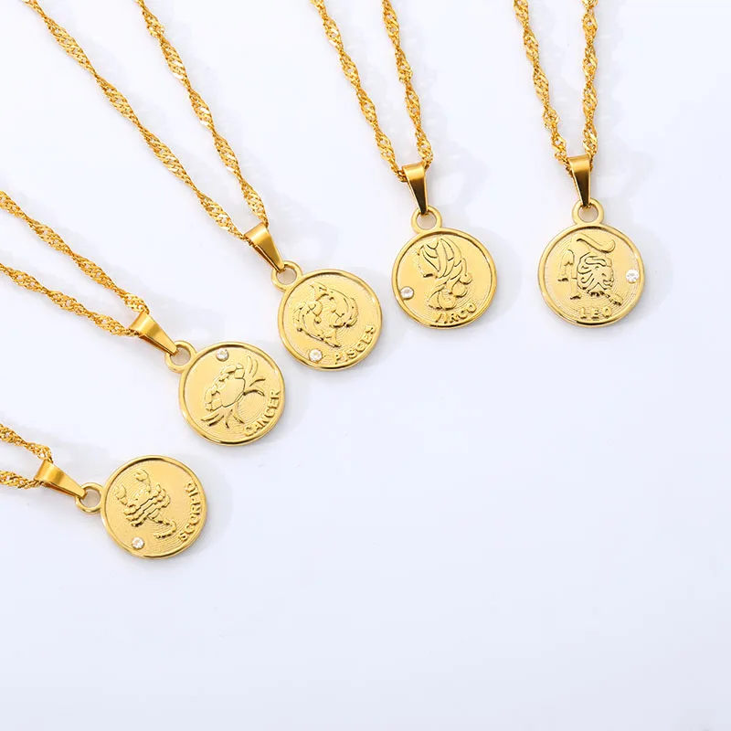 Круглая подвеска в виде монеты со знаком зодиака, минималистские украшения из нержавеющей стали для женщин и девушек Водолей, рыбы ожерелья со стрельцом BFF