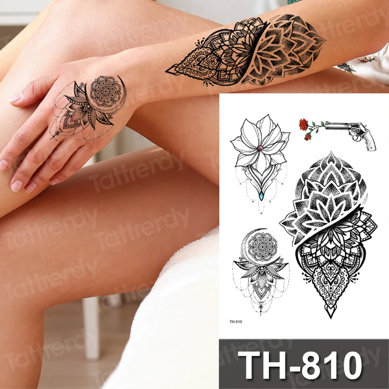 Временные водостойкие тату-Стикеры с цветком, поддельные черные эск...