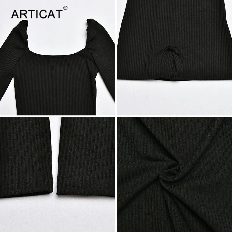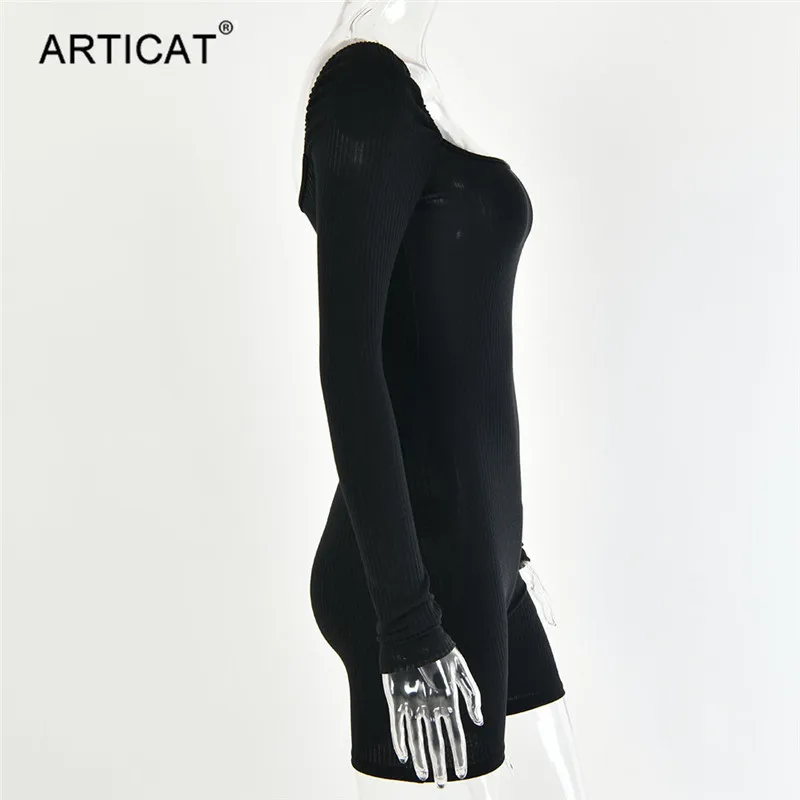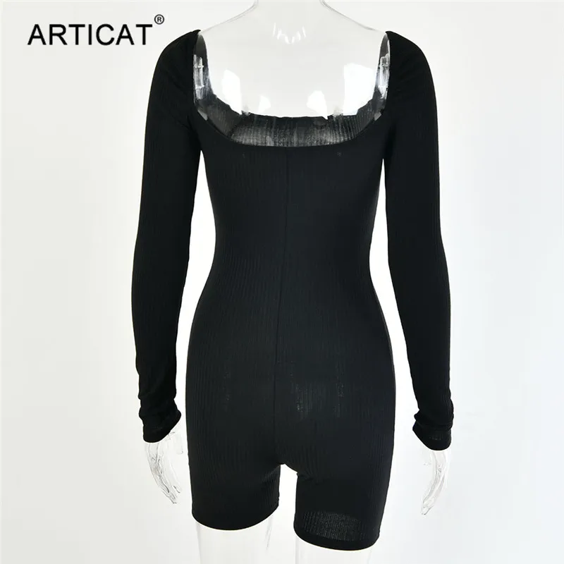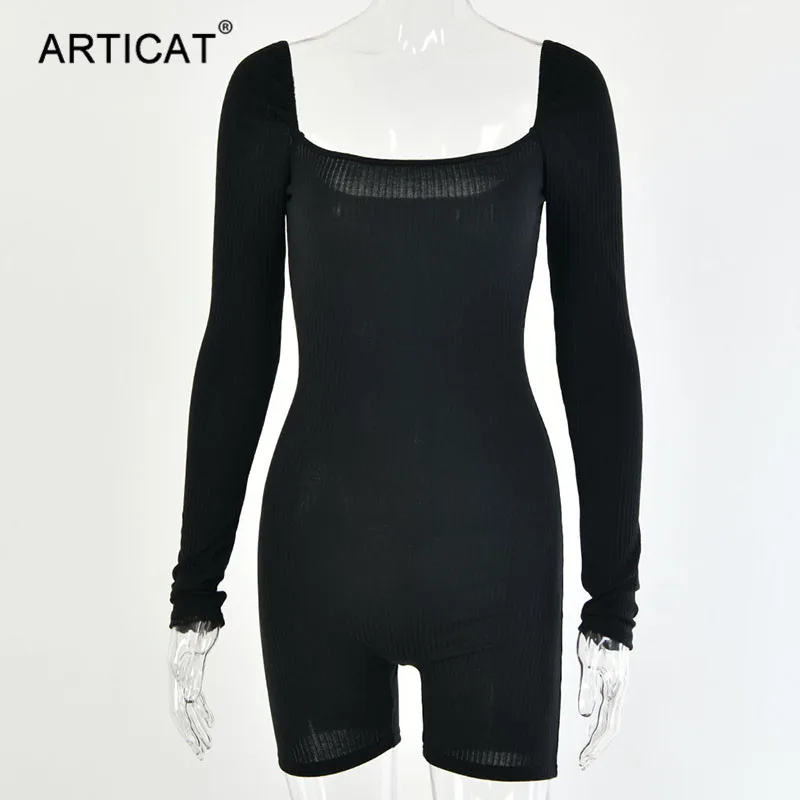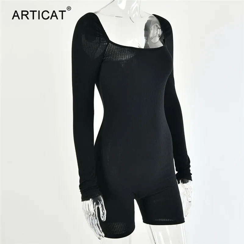 Articat трикотажный обтягивающий комбинезон , женский сексуальный черный облегающий комбинезон с длинным рукавом и квадратным вырезом, Женская Повседневная Уличная одежда 2020