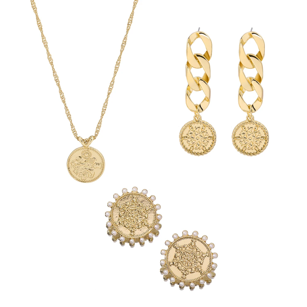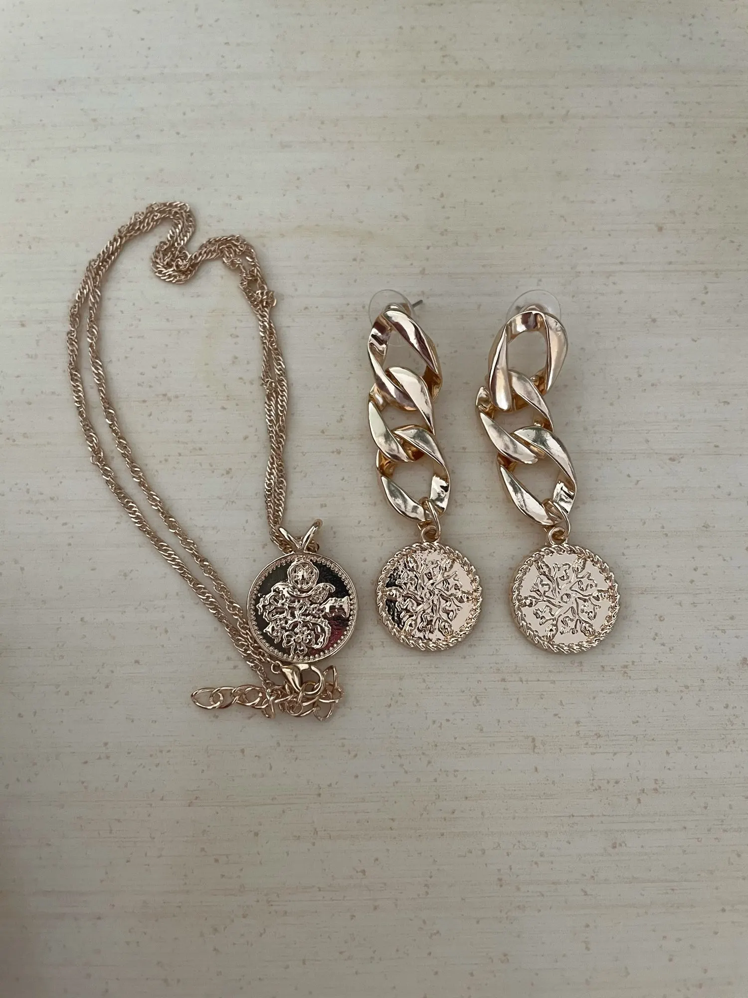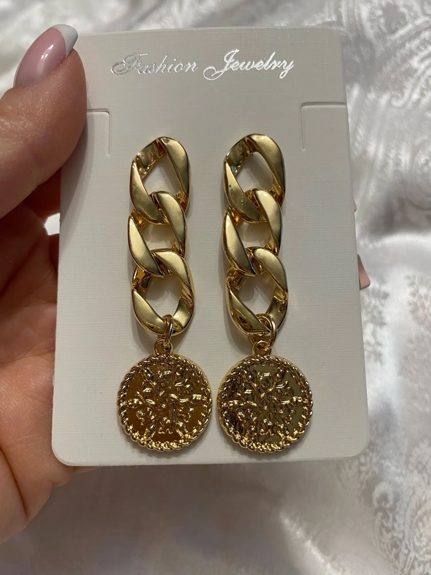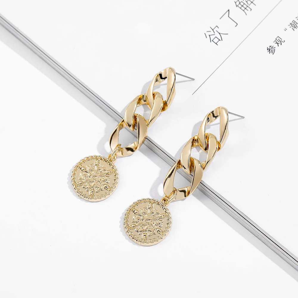 Long Chain Earrings For WomenEngraved Coin Earrings