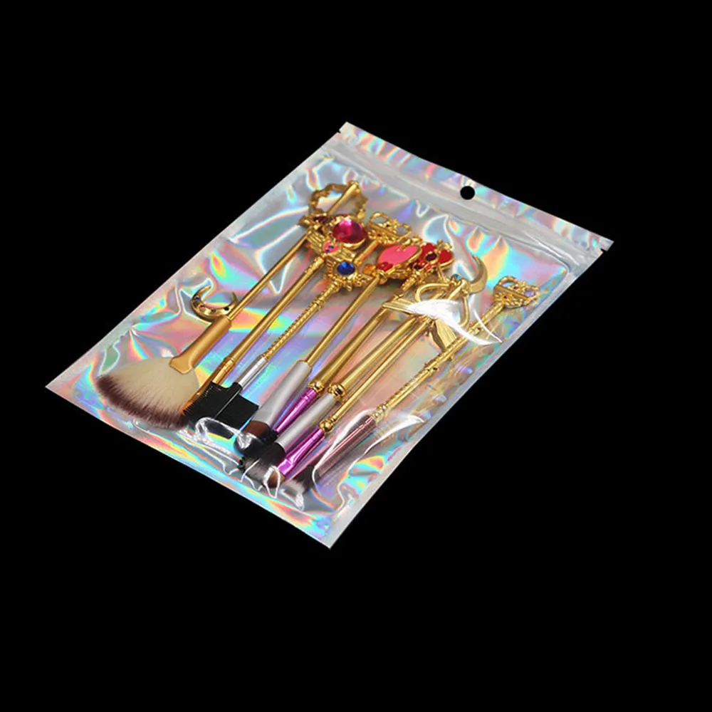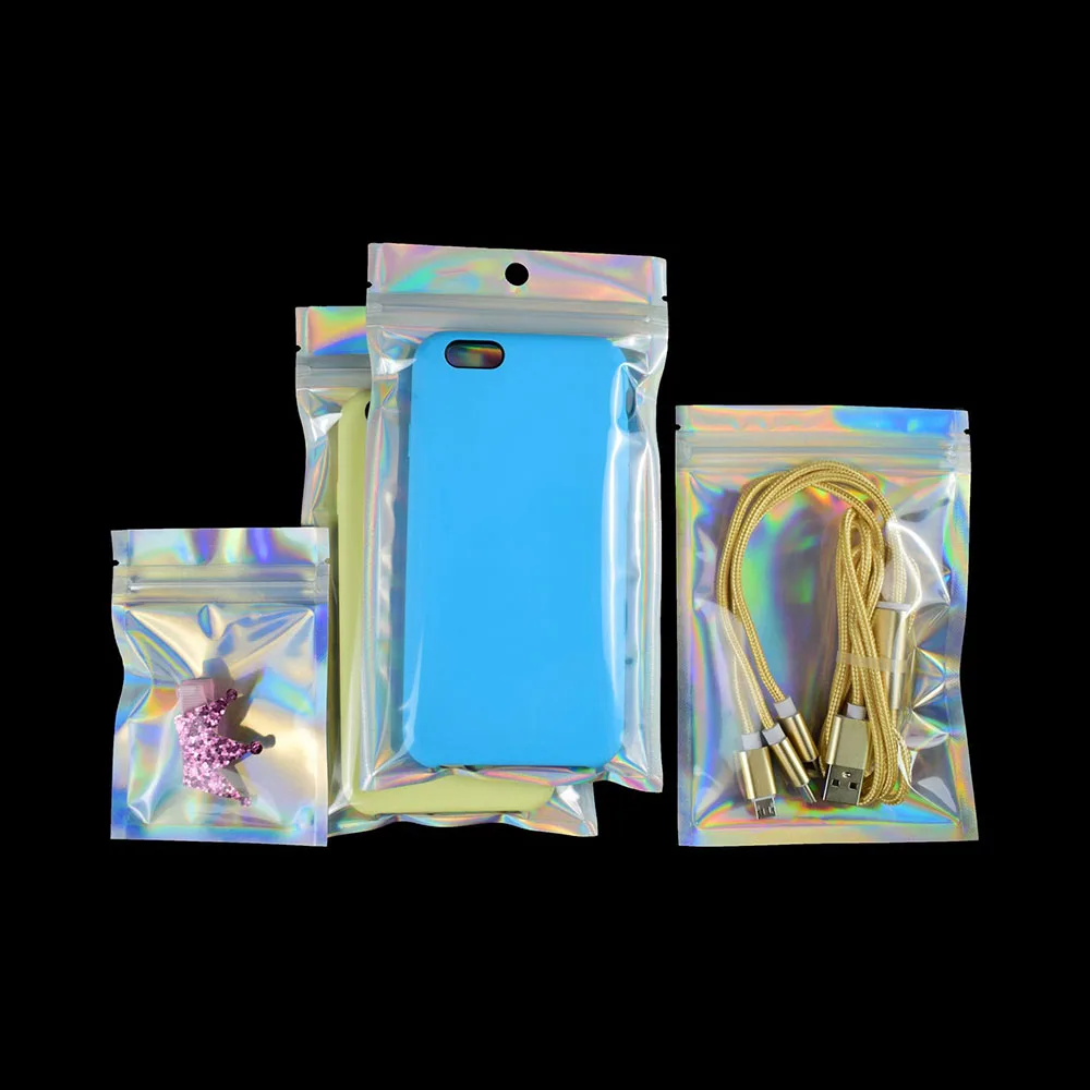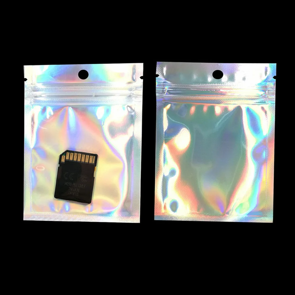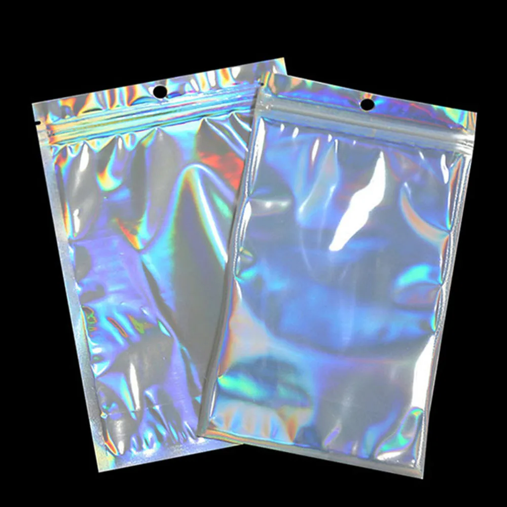 100 шт. плоская солевая косметичка для ванн с застежкой-молнией, прозрачная голографическая лазерная мини-сумка из алюминиевой фольги, плотные пакеты