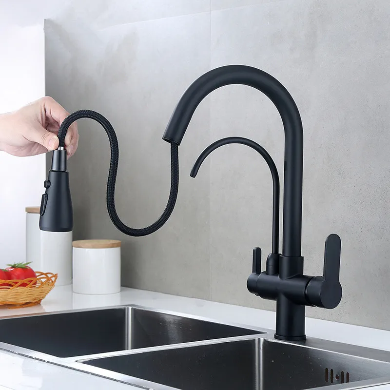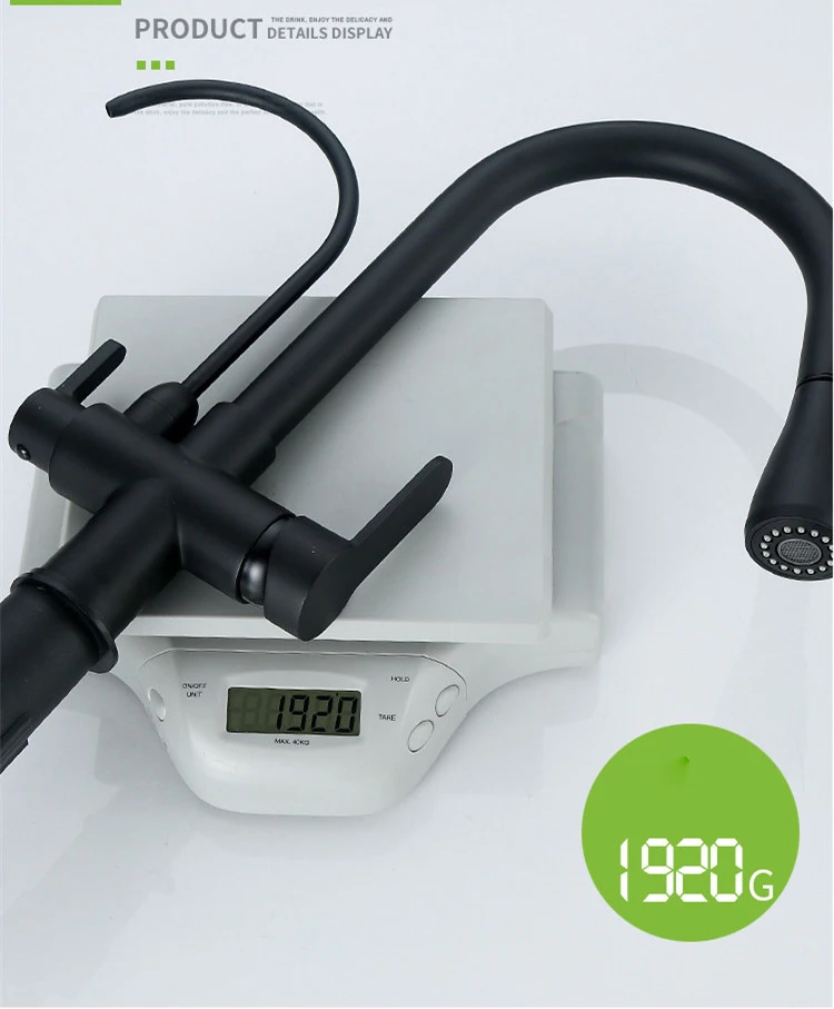 Сертифицированное качество и надежность:Матовая черная отделка, корпус кухонного крана высокого качестваSUS304 нержавеющая сталь, Без свинцаНержавеющая стальКонструкция (Solider и сильнее).