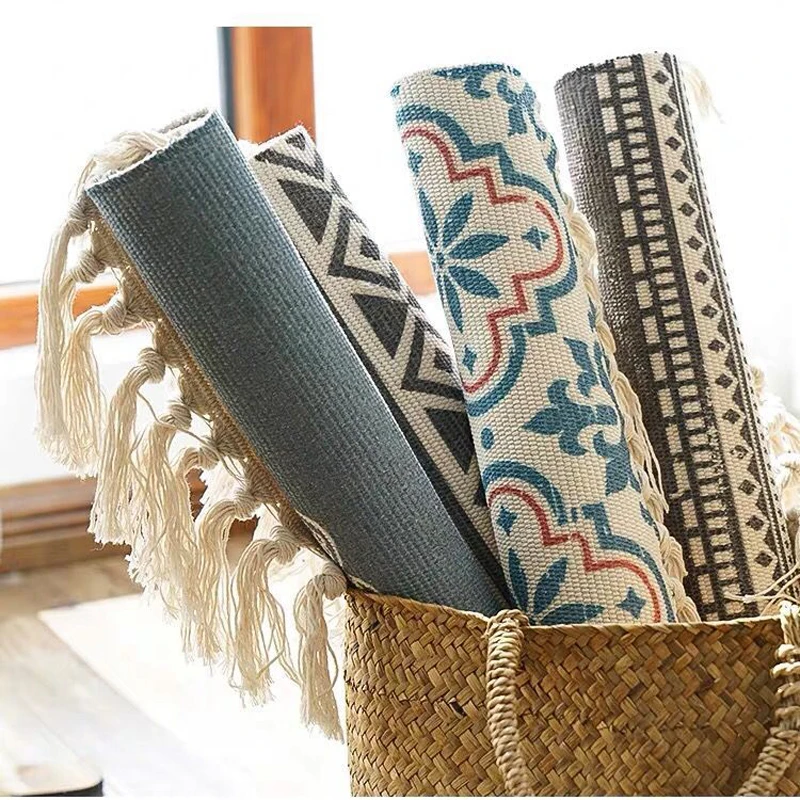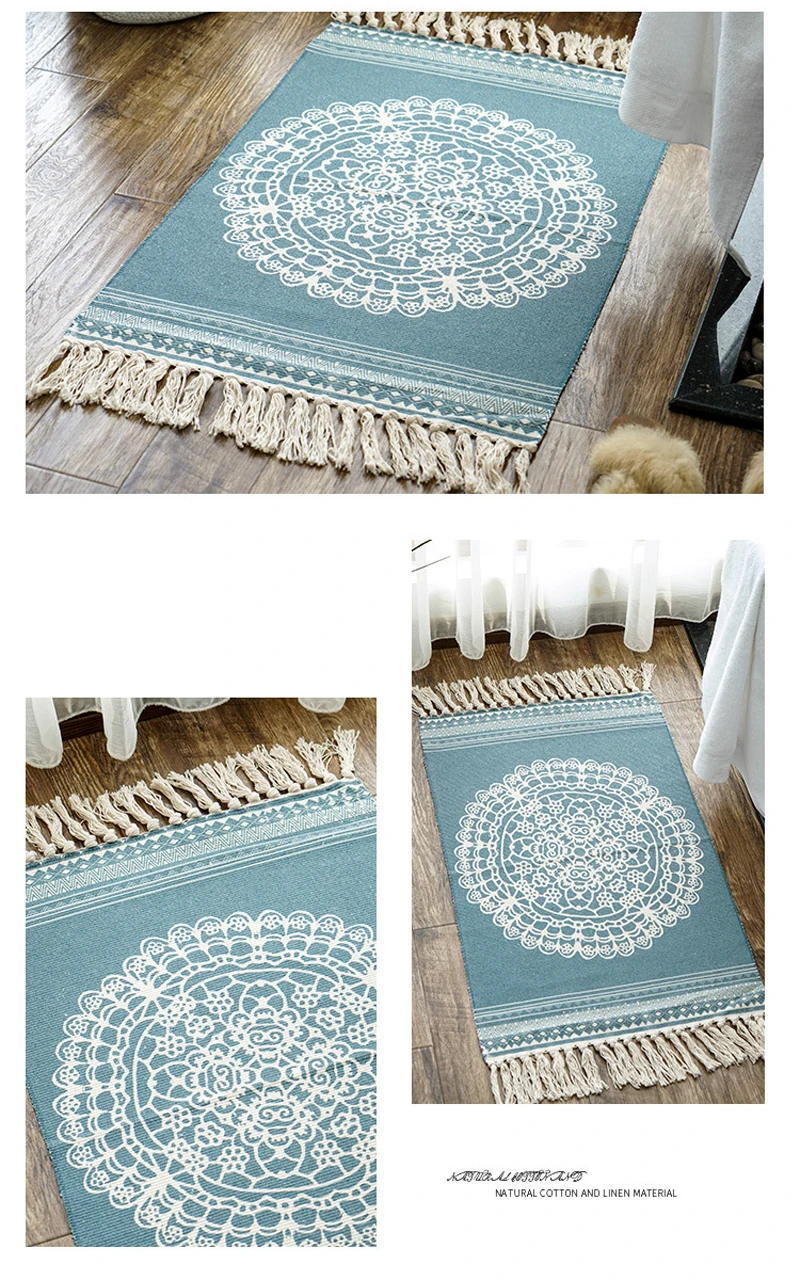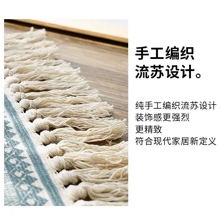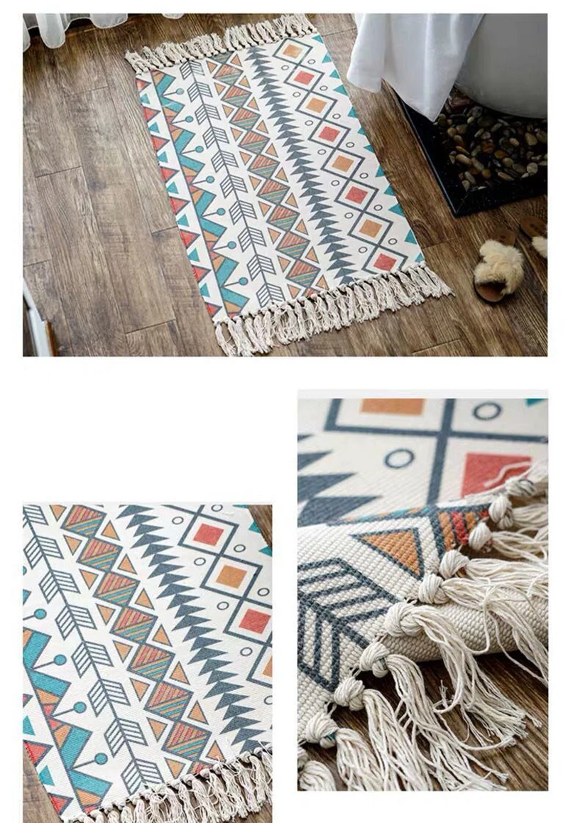 Плетеные коврики из хлопка в богемном стиле для гостиной, кофейного столика, дивана, с кисточками