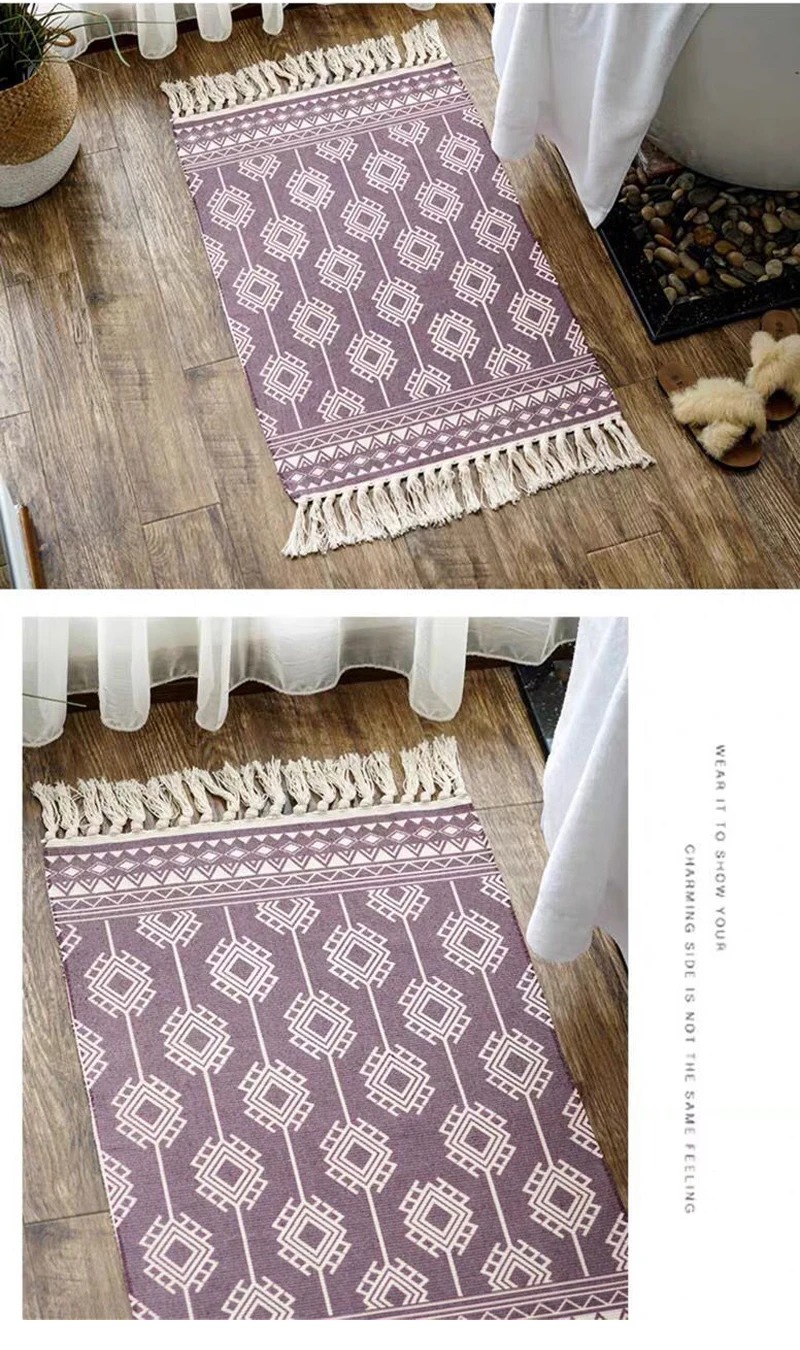 Ретро богемный тканый хлопковый льняной ковер ручной работы с кисто...