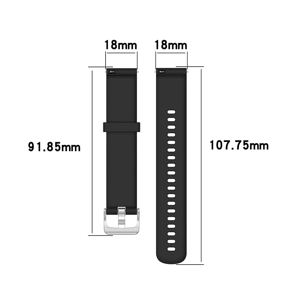 1. Универсальный ремешок подходит для всех умных часов шириной 18 мм 2. Материал: мягкая силиконовая лента с металлической пряжкой 3. Удобно носить, не вредит нашей коже 4. Простая установка с быстроразъемным штифтом 5. Подходит для запястья 5,5-8,7 дюйма, подходит для мужчин и женщин 99%