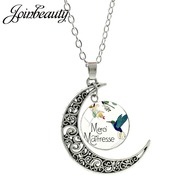 JOINBEAUTY синяя птица французская Merci Maitresse унисекс ожерелье Луна подвеска длинная цепочка ручная работа ювелирные изделия для подарка спасибо NT50