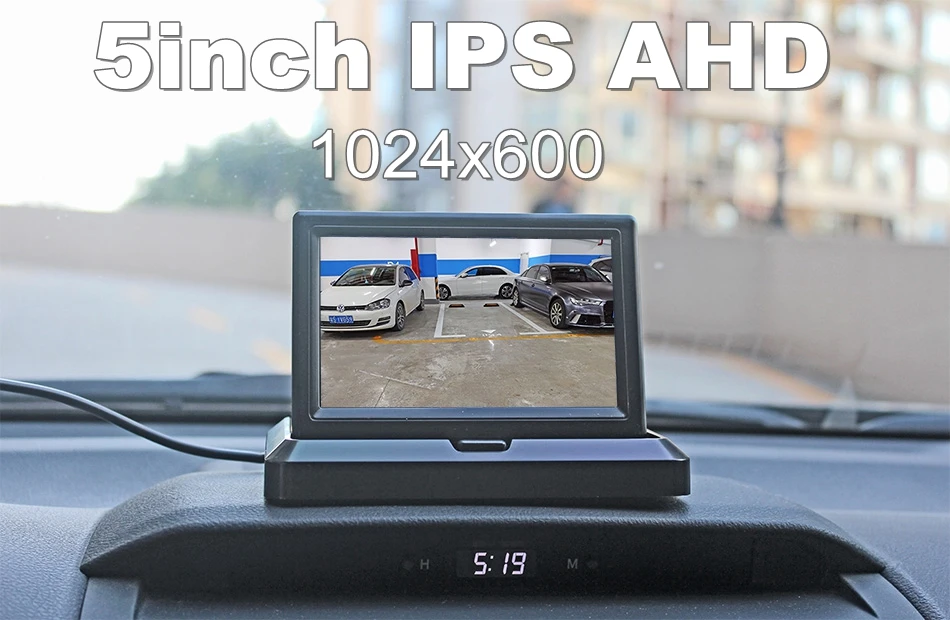 Резервный монитор DIYKIT 5 дюймов 1024x600, складной IPS AHD автомобильный монитор заднего вида, для автомобильной камеры AHD CVBS