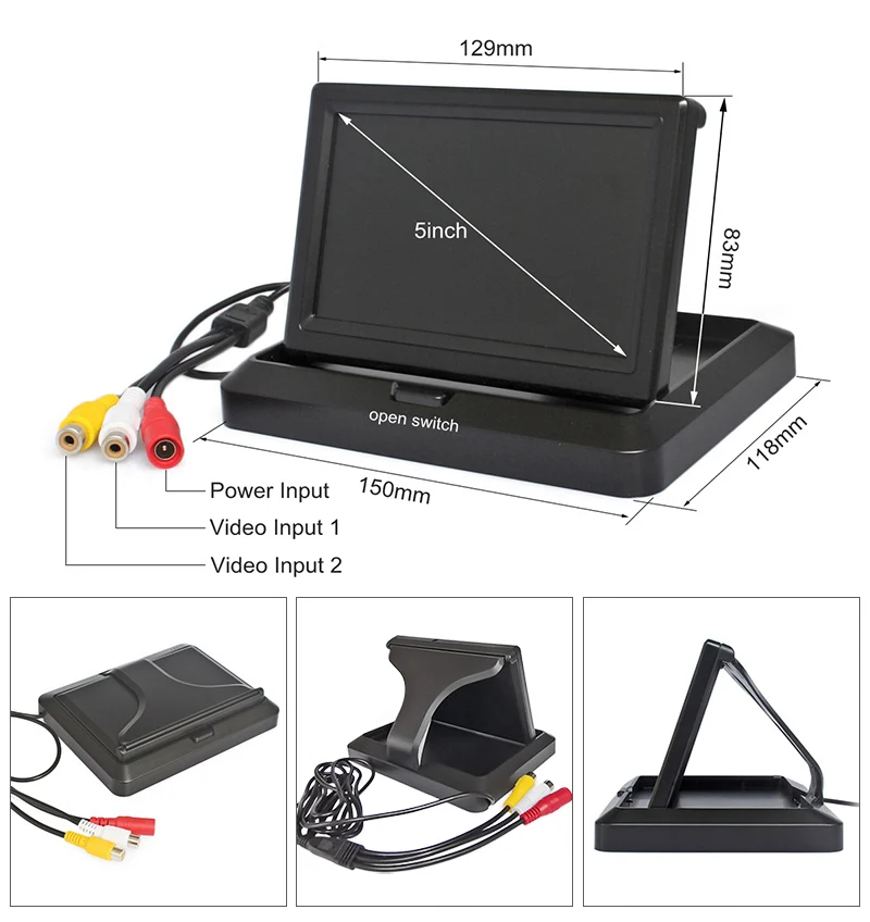5 "фольдабельАвтомобильный ЖК-монитор AHD IPS с 2 видеовходами