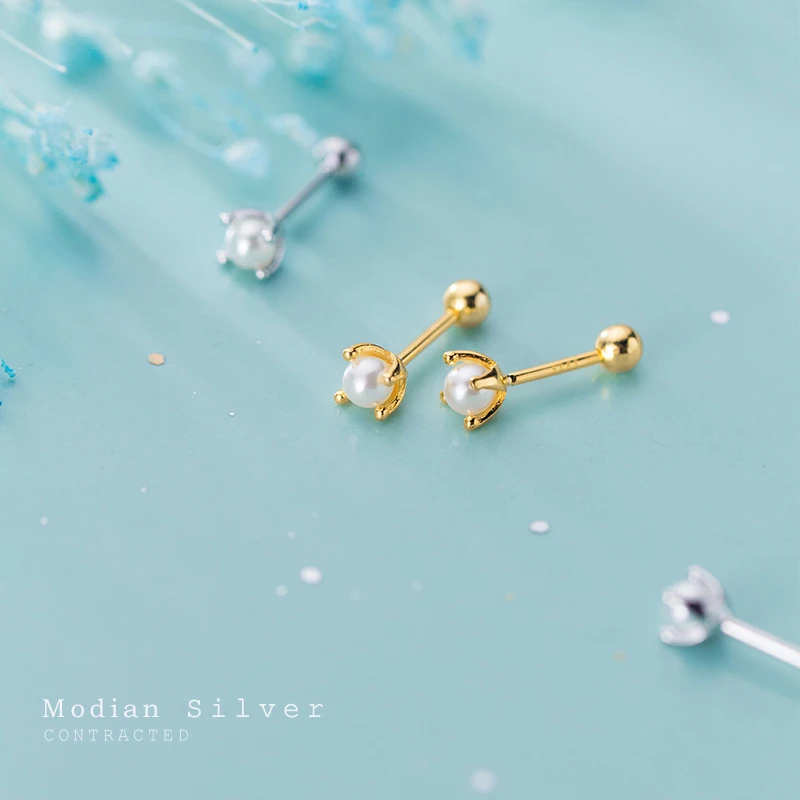 Modian 925 стерлингового серебра маленькие серьги-гвоздики из натурального жемчуга для женщин Золотой Цвет серебряные ювелирные изделия серьги для женщин Подарки