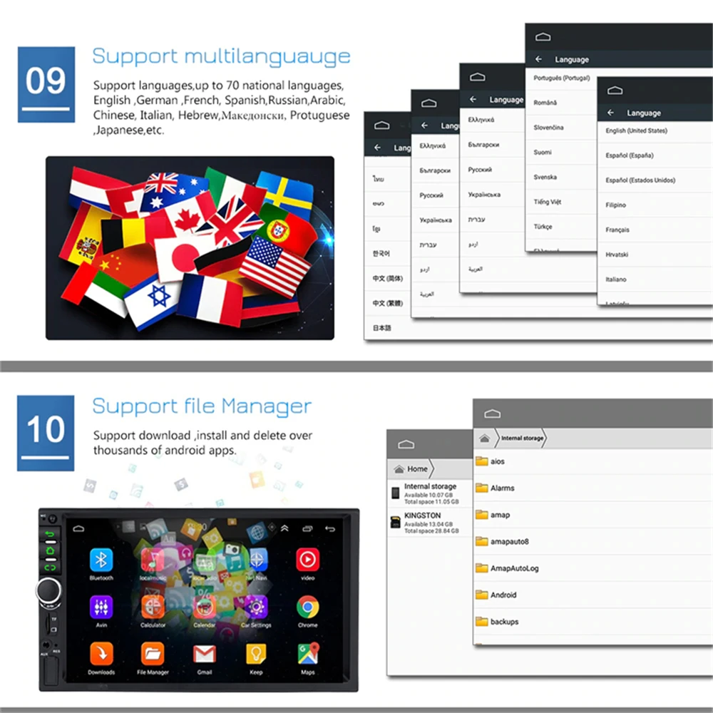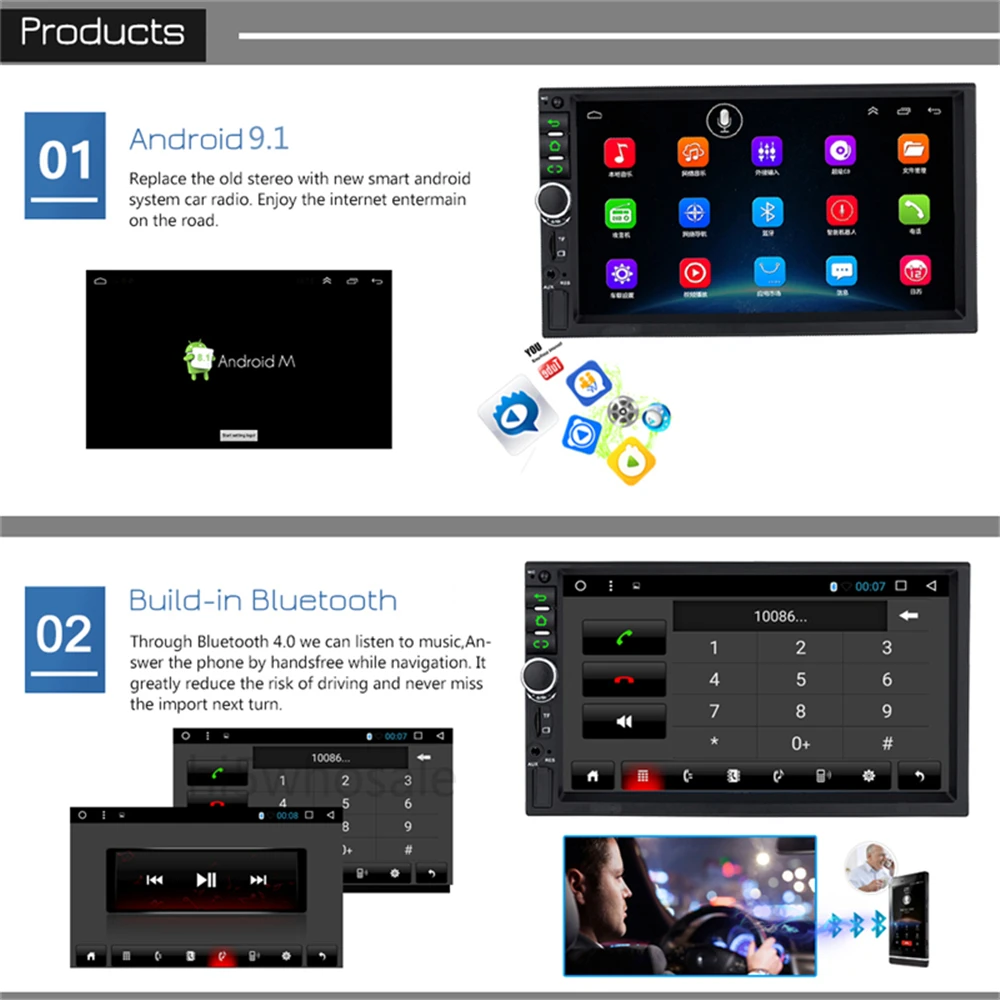 Особенности: ●HD 7 ''Автомагнитола mp5 плеер ●Модернизированная двойная система зеркальной связи: IOS/Android mirror link IOS односторонняя: IOS поддерживает одностороннюю проекцию мобильный телефон на машину Двусторонняя связь Android: Android поддерживает двустороннее соединение мобильный телефон ● Встроенная gps-навигация: пользователи могут приобрести напрямую в play store для автономной навигации. При подключении к Wi-Fi Google Maps можно использовать идеально, вы можете пойти куда угодно и никогда больше не заблудиться. ● Встроенный Wi-Fi: Подключитесь к Wi-Fi, и вы обнаружите новый мир, самым удобным является онлайн-карта. ●Камера заднего вида: необходимо выбрать камеру, автомобиль подключается к реверсу для автоматического переключения (требуется дополнительно) ● Управление рулевым колесом: через него вы можете управлять необходимыми функциями с помощью рулевого колеса, более удобно ● Встроенный Bluetooth с A2DP/Hands Free/Телефонная книга: звонки в режиме громкой связи Bluetooth, музыкальный плеер Bluetooth, Автозагрузка телефонных книг ●Диктофон: вы можете выбрать диктофон, а в автомобиле есть воспроизведение, доказательства могут быть сохранены ● Двойной вход USB-адаптера ● Поддержка файлового менеджера: поддержка загрузки, установки и удаления более тысяч приложений android ● Поддержка нескольких языков: поддержка языков, до 70 национальных языков ● Вы можете наслаждаться музыкой с вашего мобильного телефона без каких-либо кабелей, а также поддержкой USB-соединения. ● FM-радио: онлайн-музыка вы можете передать музыку на автомобильную стереосистему через FM, чтобы наслаждаться оригинальным автомобильным стереозвуком, с 18 предустановленными станциями ● Настройка времени: вы можете использовать сеть или GPS, чтобы автоматически открыть дату и время, или вы можете настроить его вручную. Характеристики: Система: Android 9,1 Размер экрана: 7 дюймов Память: 2 Гб (RAM)+ 16 Гб (ROM) Разрешение экрана: 1024*600 Зеркальная ссылка: Android/IOS Выходная мощность: 4*45 Вт Функция управления рулевым колесом: Поддержка Радиодиапазон: FM Видеовыход: Поддержка Карты: Встроенные офлайн-карты WIFI: поддержка USB: двойной интерфейс USB Изменение логотипа автомобиля: Поддержка Аудиоформат: APE/FLAC/WAV/MP3/WMA и т. д. Формат видео: MKV/RMVB/AVI/MP4/MDV и т. д. Формат изображения: PNG/JPEG/JPG/GIF/WBMP/BNP и т. Д. Язык: китайский/английский/французский/итальянский/Корейский/японский/арабский/испанский/португальский/русский/Турецкий/Вьетнамский/Иврит/Польский/немецкий и т. Д. Посылка 1 Автомобильный MP5 плеер 1 x Кабель Питания 1 Антенна GPS 1 вход для камеры 1 кабель RCA 2 x USB-кабеля 1 x Инструкция по эксплуатации