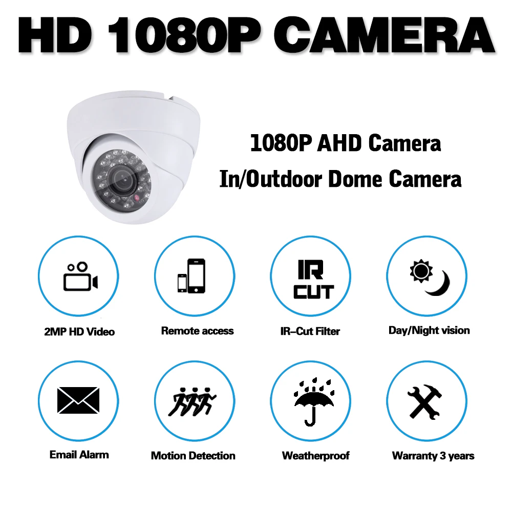 Примечание:Это AHD 1080P камера, работает с использованием 5MP AHD DVR или 4MP AHD DVR или "AHD-H 1080P System" или "AHD 1080N System", если нет, камера 1080p не работает!