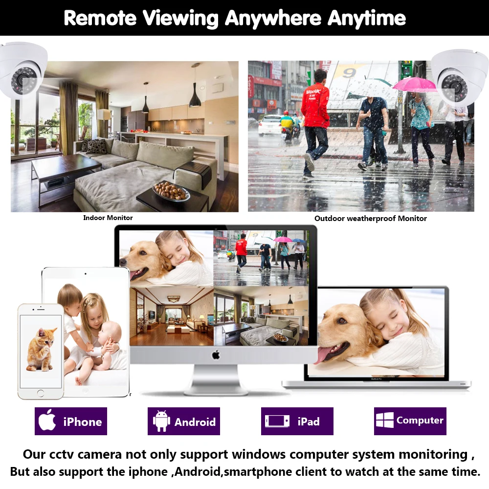 Простая настройка, всего 4 шага для просмотра на мобильный телефон,Просмотр видео в режиме реального времени в системе из любого места и в любое время с помощью смартфона, стола или ПК с передовой технологией P2P, вы можете получить удаленный доступ к вашей системе в течение нескольких минут или меньше, нет необходимости в переадресации, удаленный доступ никогда не был таким простым!