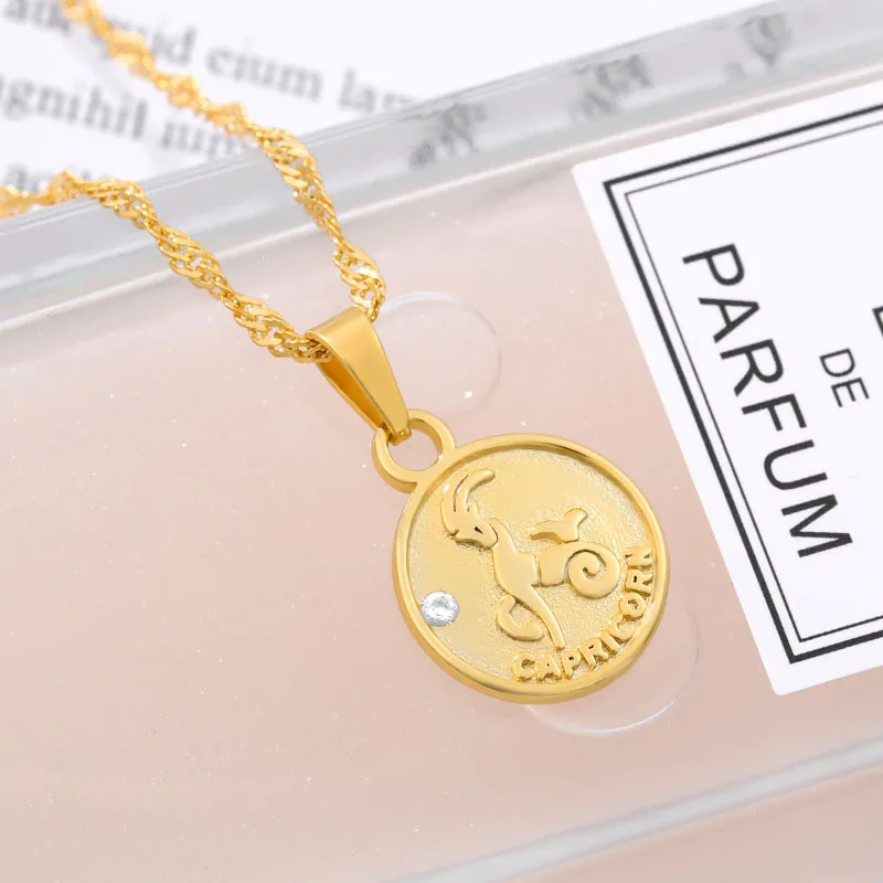 Ожерелье со знаком зодиака для женщин и мужчин, из нержавеющей стал...