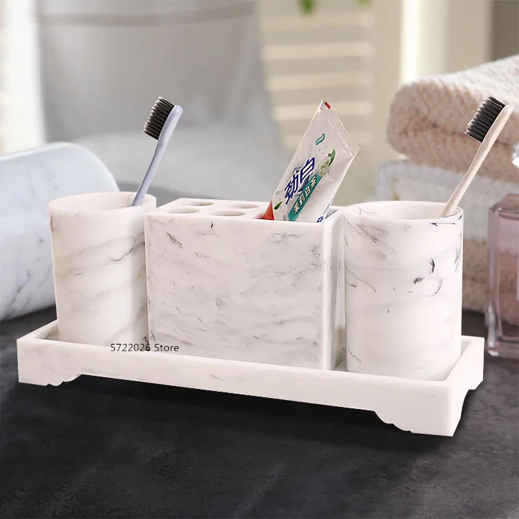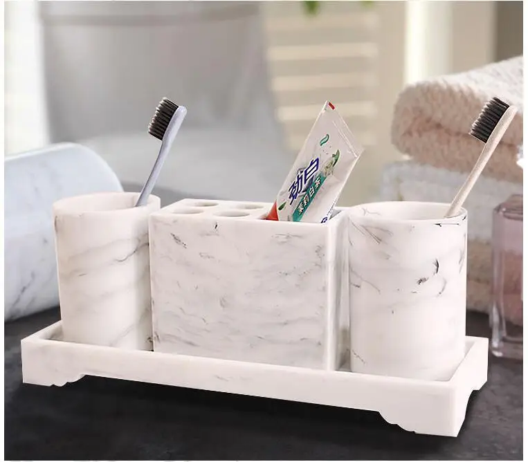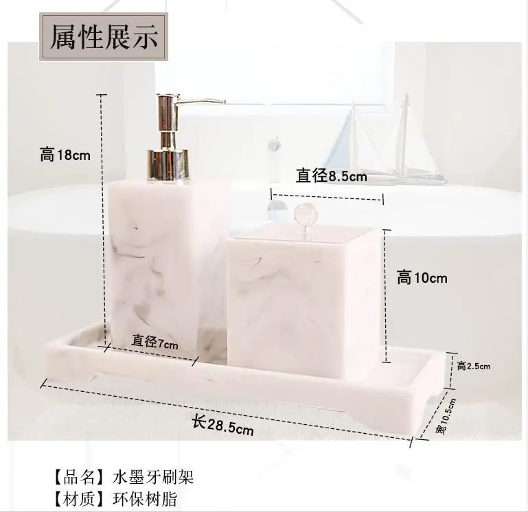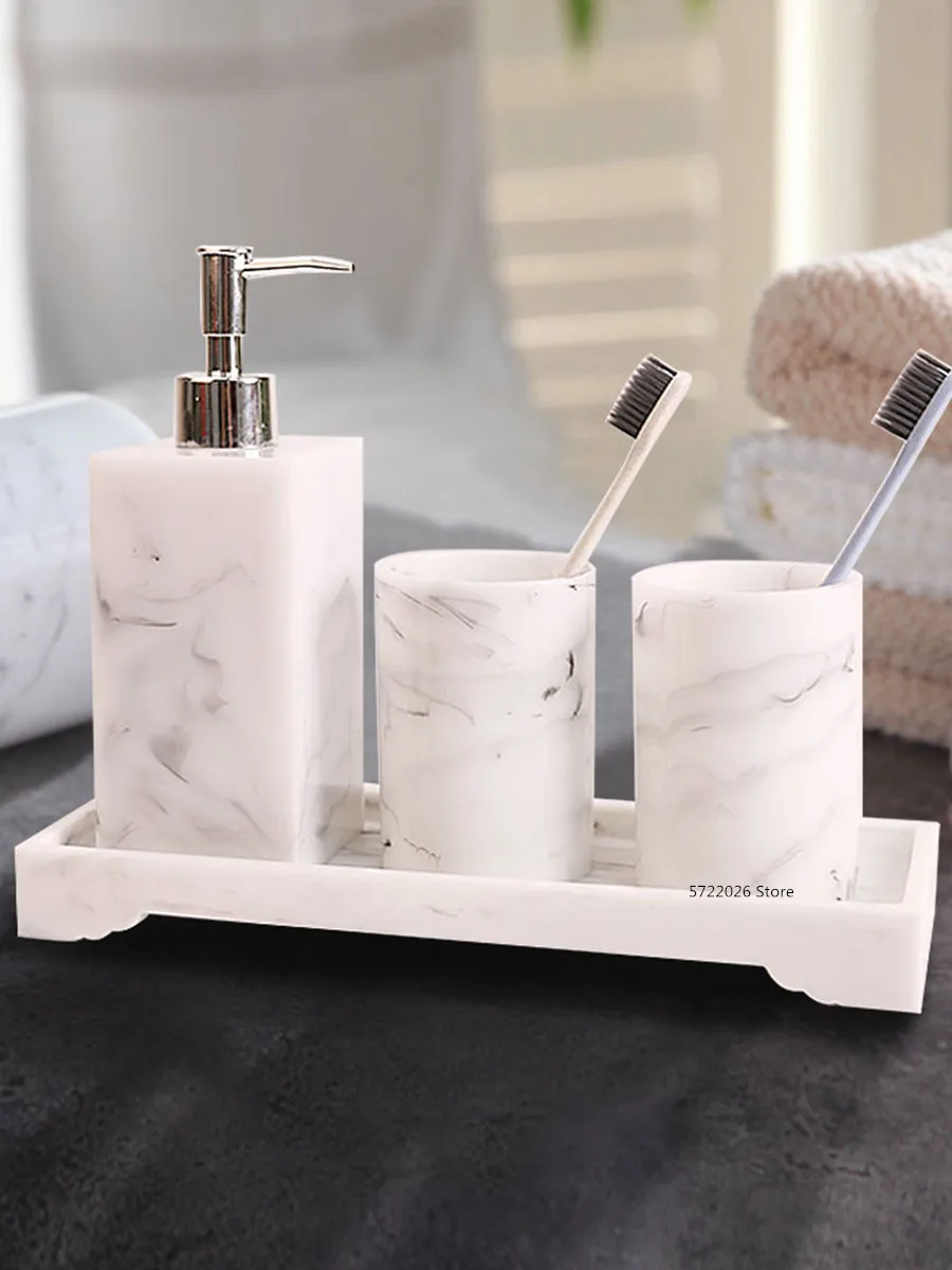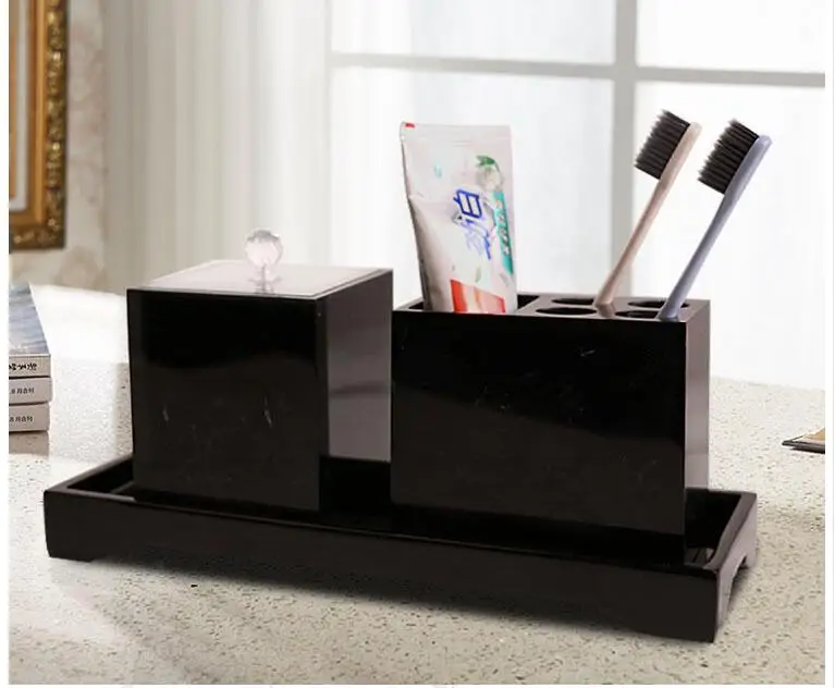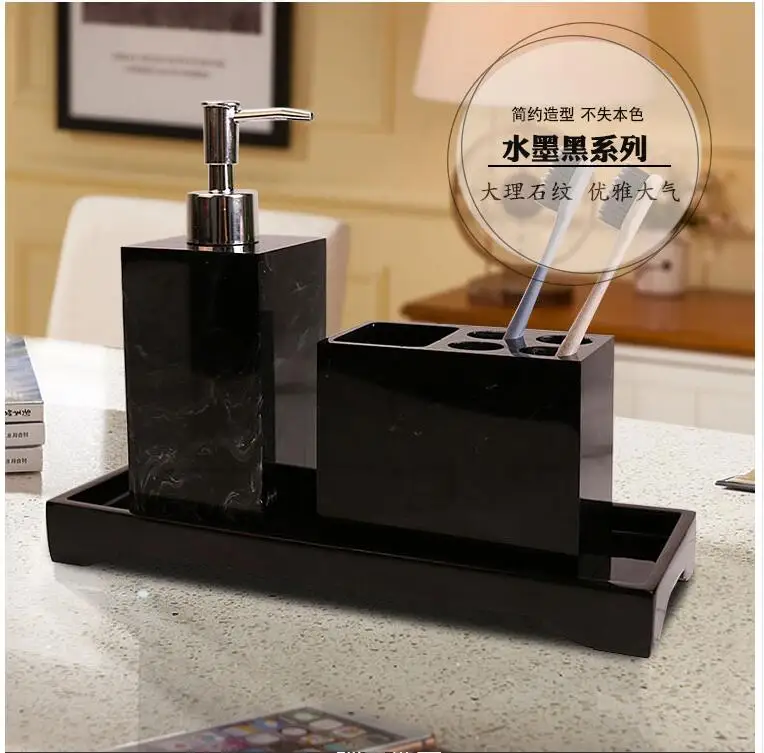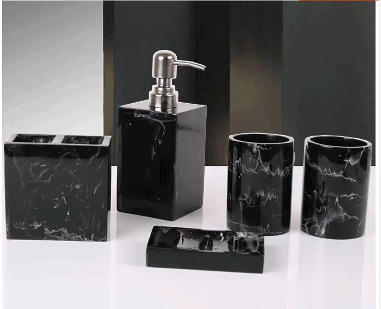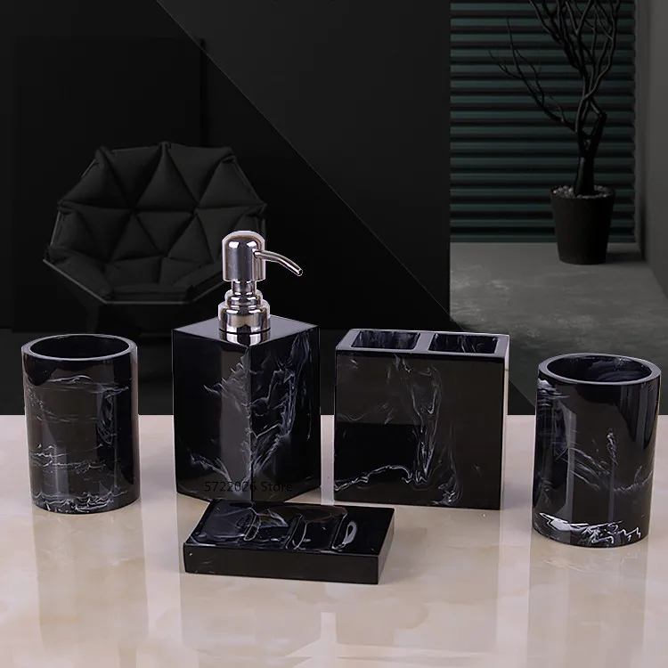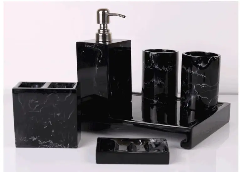 Набор для ванной комнаты в скандинавском стиле с черным мраморным узором, поднос для щетки и лосьона, коробка для ватных палочек, аксессуары для ванной комнаты