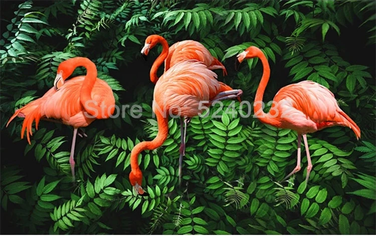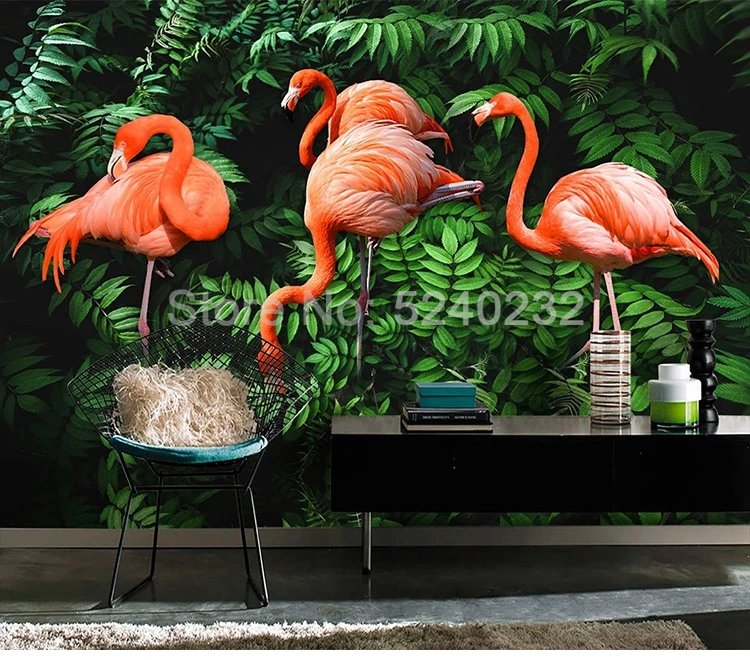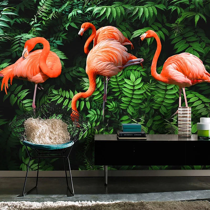 3D фотообои на заказ, фламинго, растение из тропического леса, зеленый лист, большая роспись гостиной, спальни, ТВ, настенная живопись