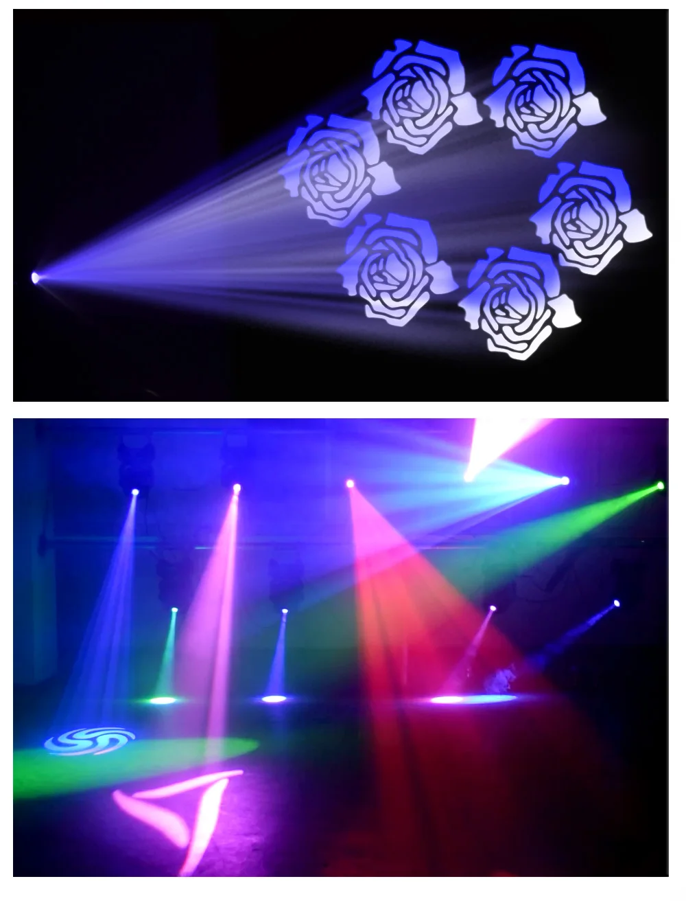 GOBO Wheel8 Gobos + White, Spilt Colors, Rainbow Effect