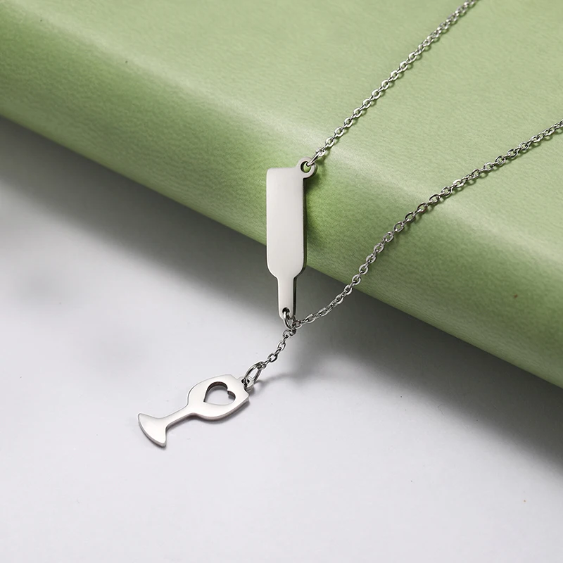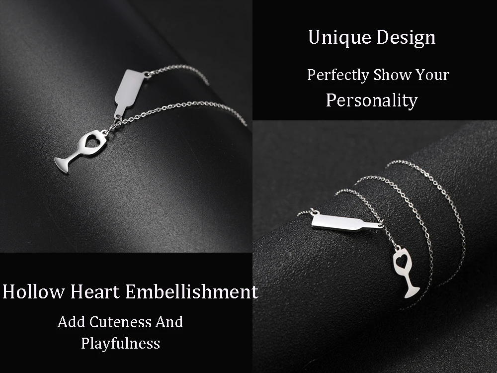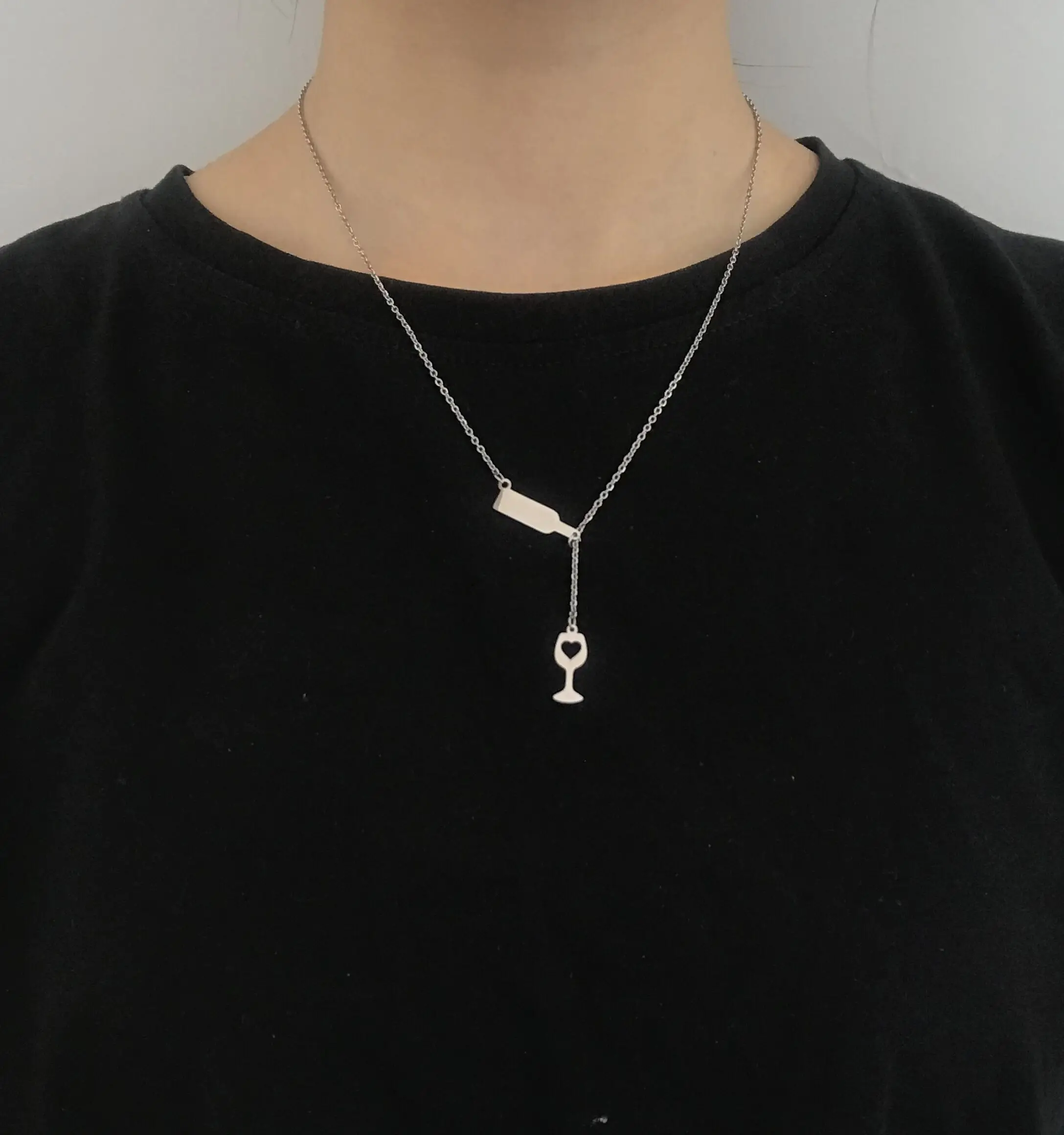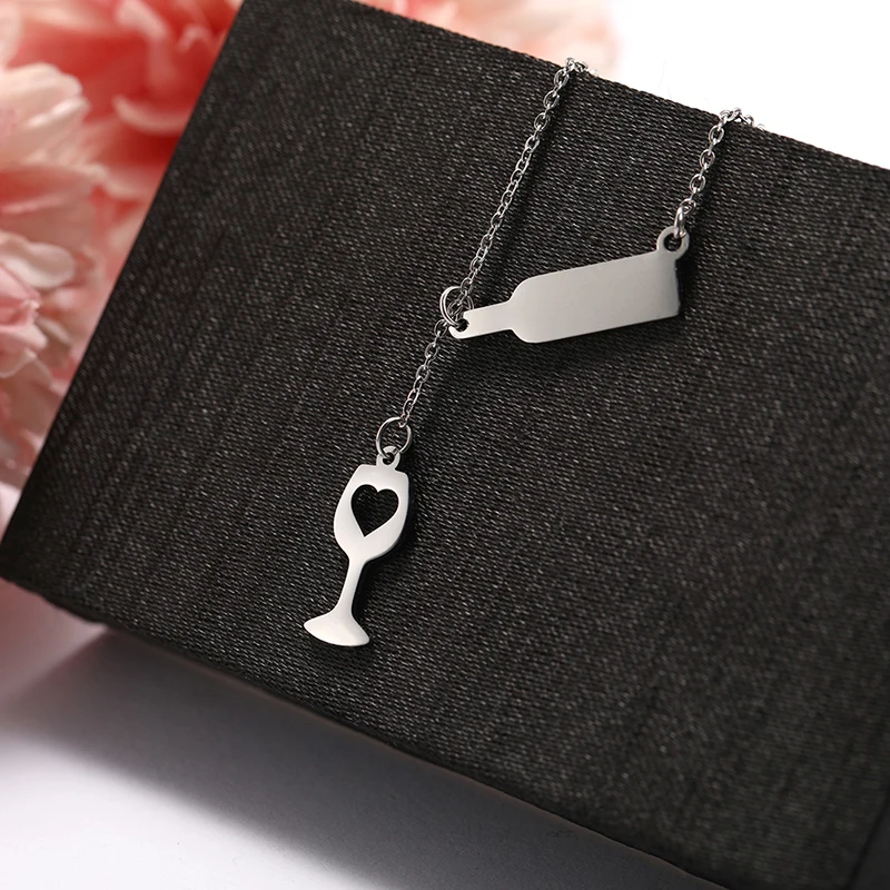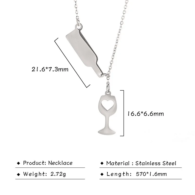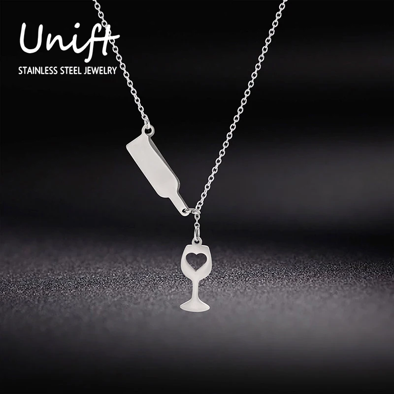 Уникальная подвеска Unift в виде винной бутылки, ожерелье из нержавеющей стали с кулоном в форме сердца, длинная цепочка-чокер для женщин, ювелирные украшения