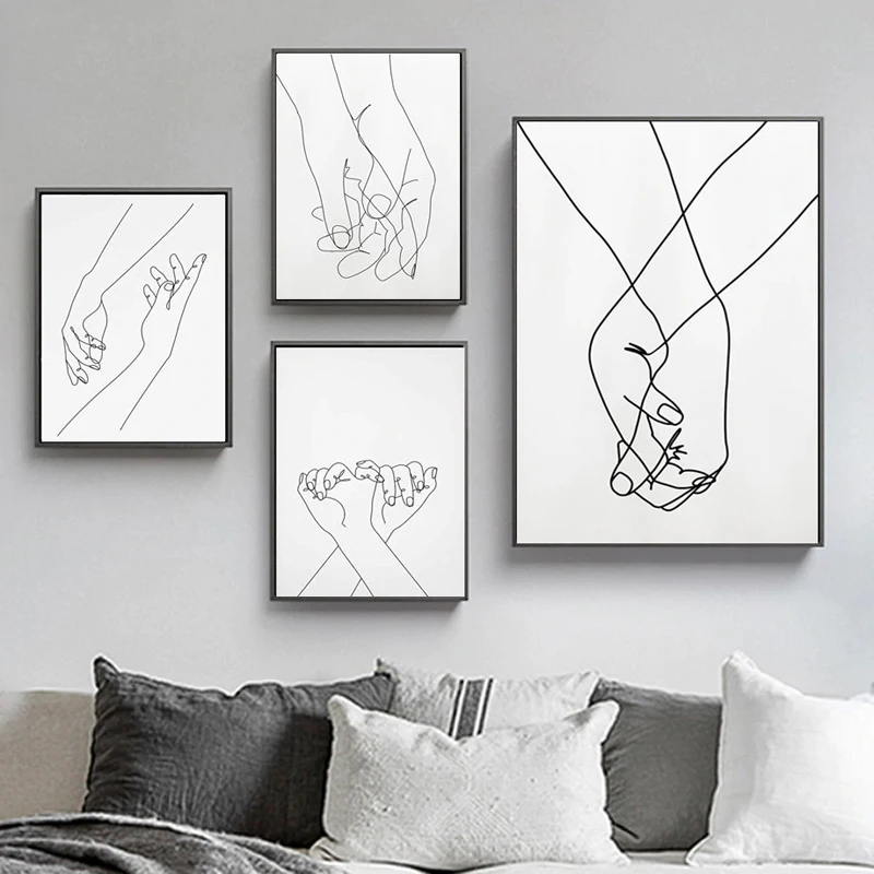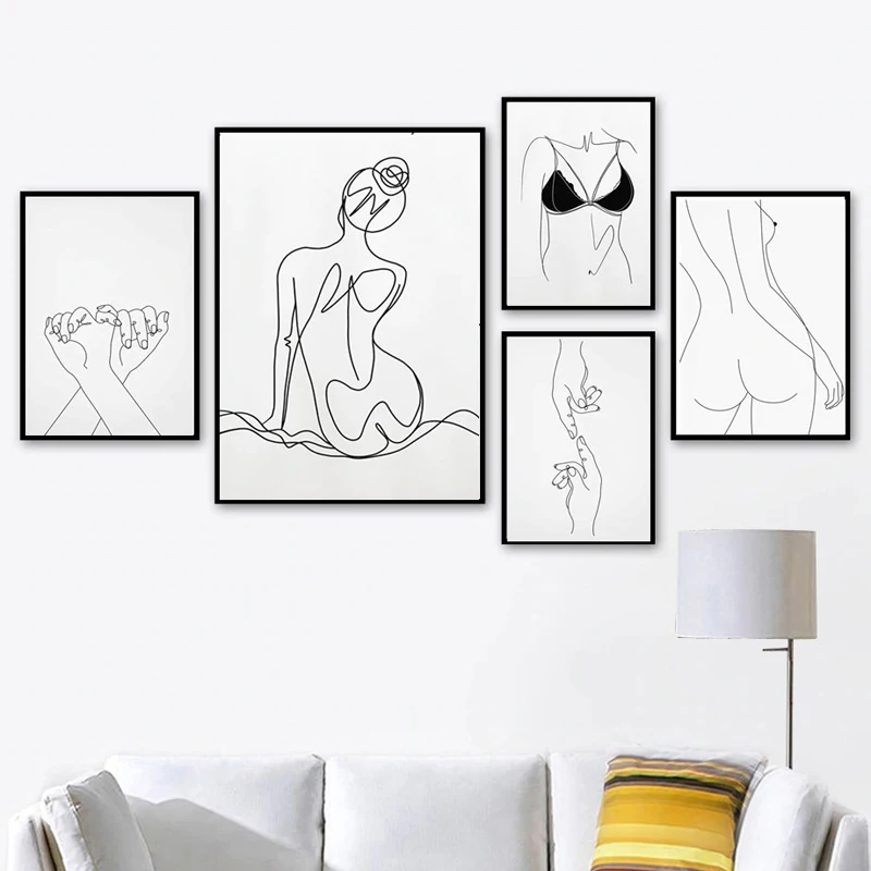 Черно-белая линия для рисования девушки, холст для рук, плакат, абстрактная настенная живопись, печать, Минималистичная Скандинавская картина, домашний декор