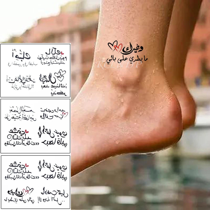 Водостойкая Временная наклейка для татуировок, Арабские буквы, сердечки, любовные узоры, личность, поддельные тату, флеш-тату для девочек, женщин и мужчин