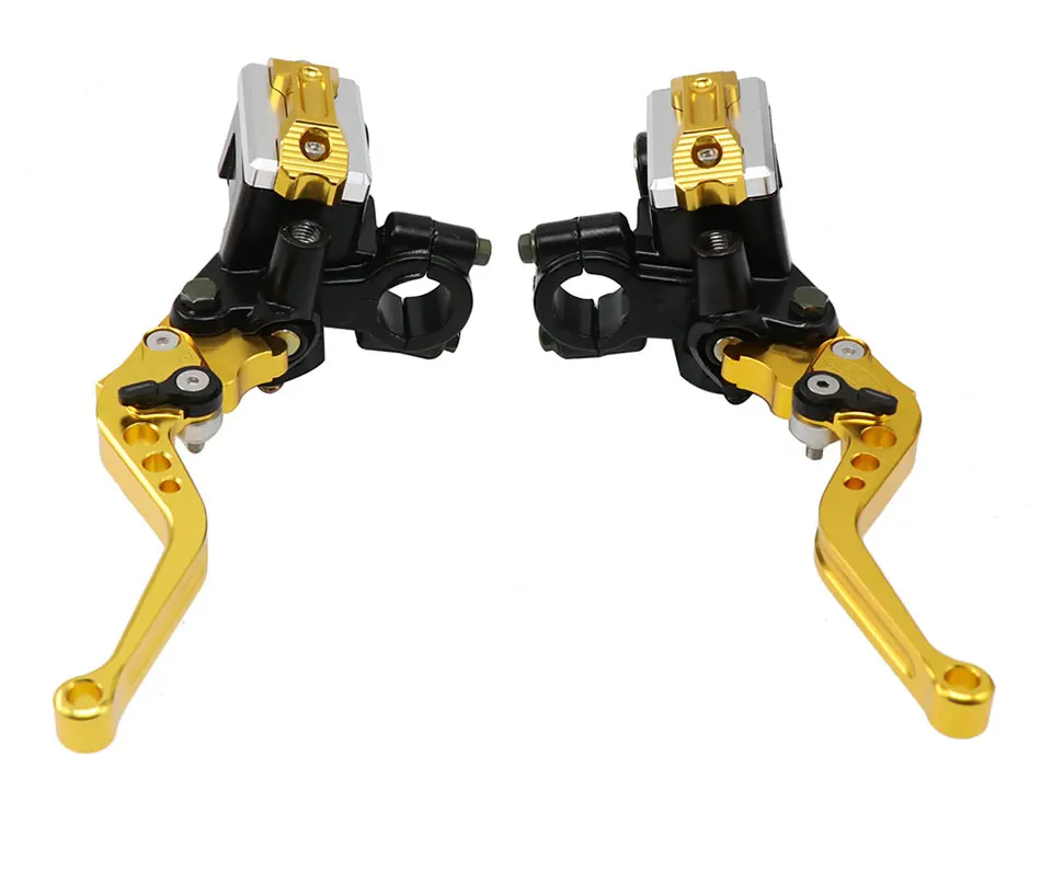 Название продукта: Главный цилиндр рычаговМатериал: алюминиевый сплав с ЧПУЦвет: золотой, черный, красный, синий, серебристый, оранжевый, зеленыйРазмещение: слева, справаПоршня диаметр Размеры: 12,8 ммРазмер шланга Banjo: 10 ммОсобенности:Универсальный стандартный 7/8 " (22 мм) Главный тормозной цилиндр для переднего колеса и окуня сцепления с регулируемыми рычагами и полным набором резервуара для жидкости.Рычаги изготовлены из алюминия и анодированы в том же цвете, что и Крышка Резервуара тормозной жидкости.Алюминиевый корпус, поршень изготовлен из специальной нержавеющей стали.Регулируемые рычаги.Приспособление:Подходит для мотоциклов 50CC - 300CC с гидравлическими рычагами сцепленияПримечание:1. Мы предоставляем четкие изображения, измерения, где это возможно. Пожалуйста, проверьте как можно больше, чтобы убедиться, что товар тот, который вам нужен.2. Замеры сделаны вручную, поэтому возможны 0,5-1 дюйм разницы в связи с тем, что измерения выполнены вручную.(1 дюйм = 2,54 см)3. В этом наборе нет инструкций. Если вы хотите знать, как использовать или установить его, пожалуйста, свяжитесь с нами по электронной почте. Мы предоставим Вам помощь как можно больше.4. Цвет фактического товара может немного отличаться от изображения из-за различий в экране компьютера, спасибо за понимание.Посылка включает в себя:1 пара главный цилиндр тормозной рычаг сцепления (левый + правый)