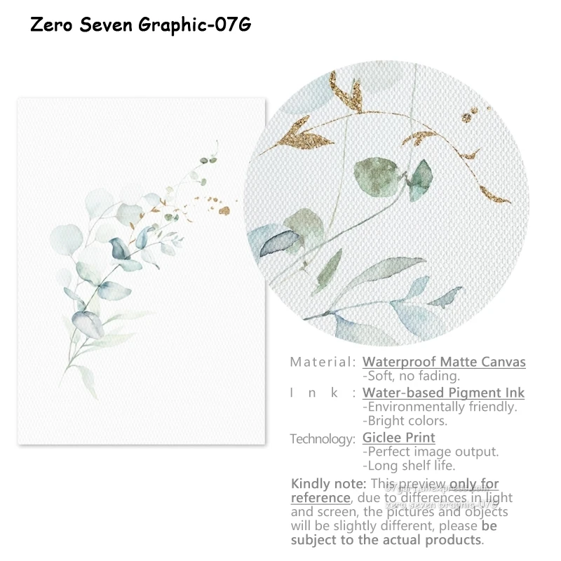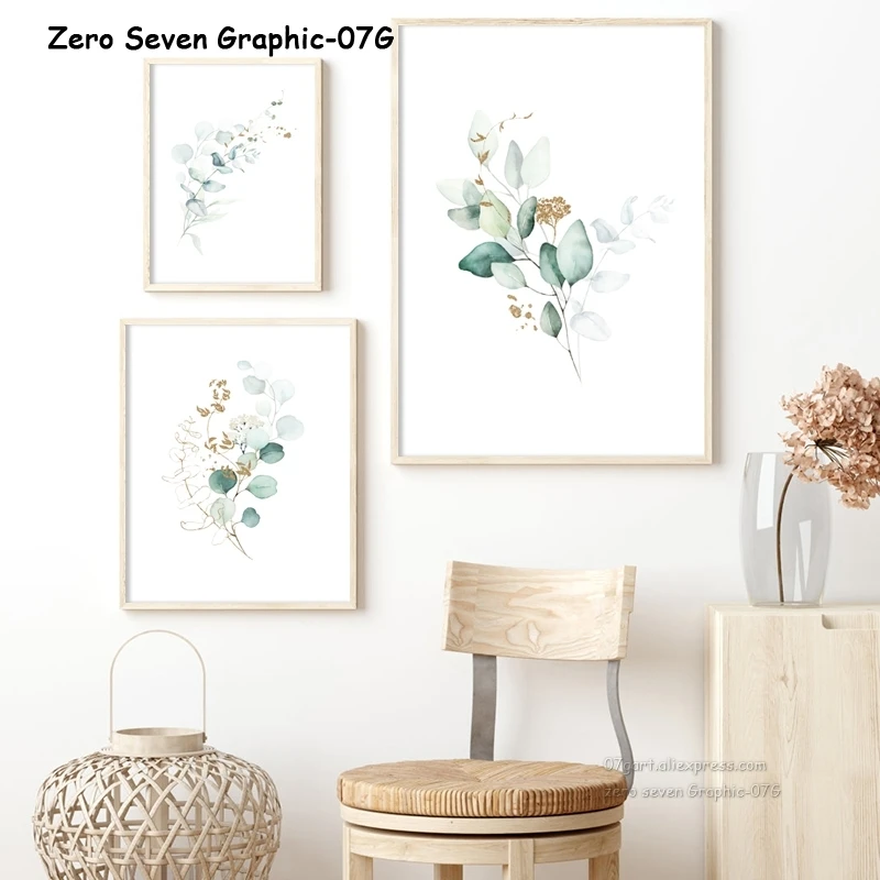 Картина на холсте, Скандинавская свежая зеленая акварель, лист эвкалипта, золотой блеск, художественные принты, галерея, Украшение стен для современного дома