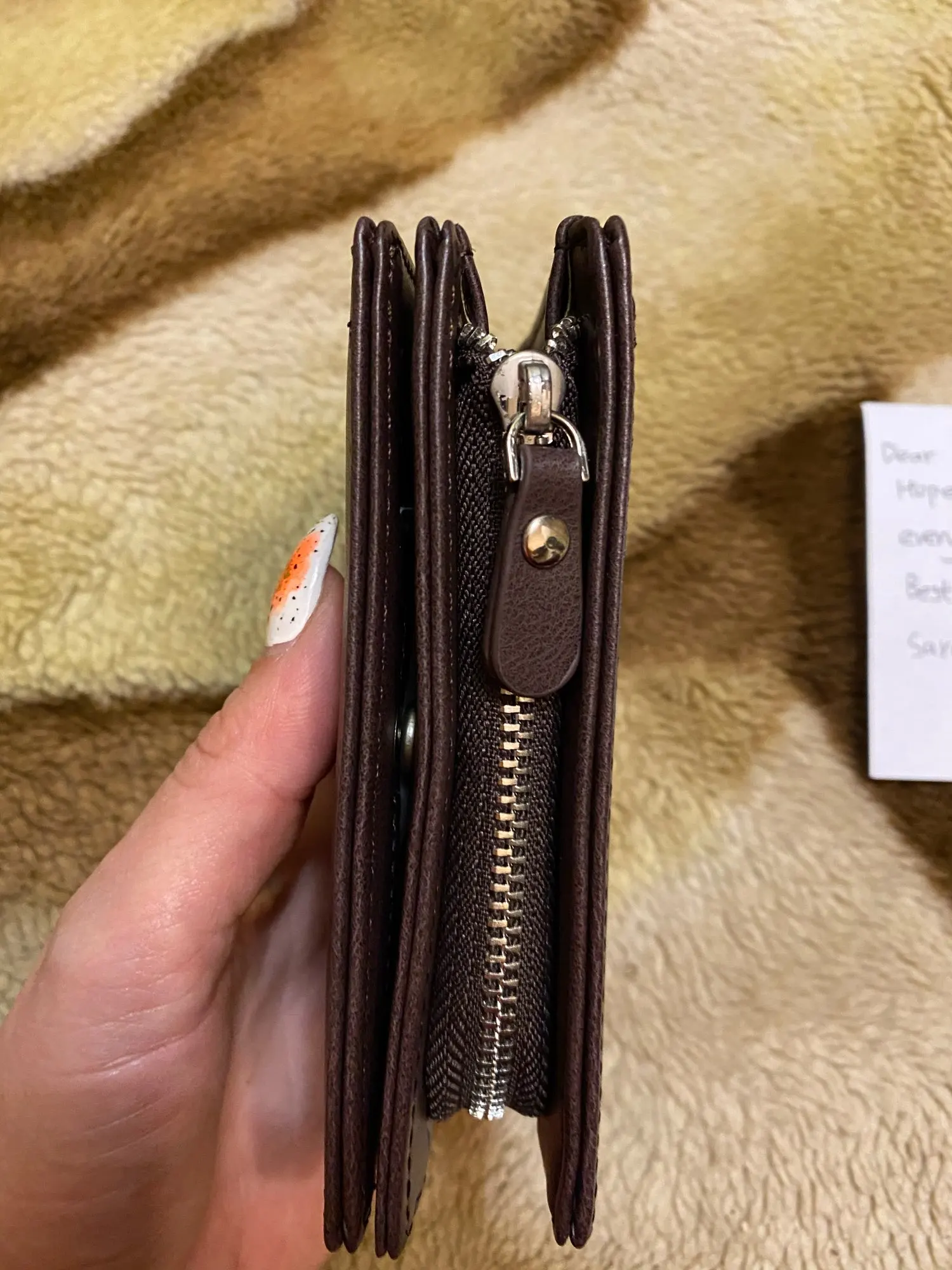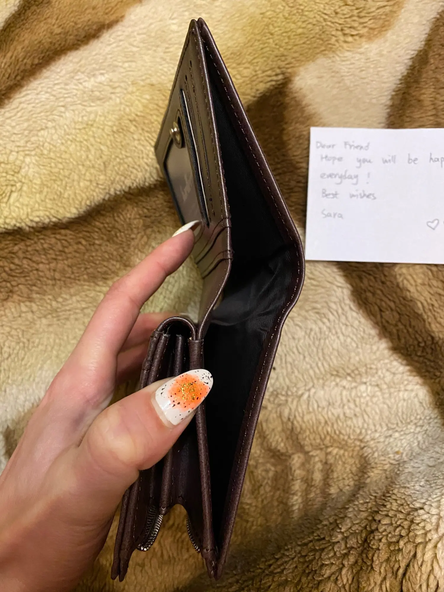Нашли красивый кошелек с моим именем! Несколько карманов, размер подходит для незаметности.