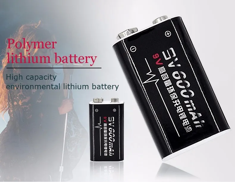 Этот продукт состоит из батареи 9 В, с использованием литиевого материала, без памяти, с низким самоотпуском, что значительно повышает производительность батареи, может заряжаться в любое время. Батарея имеет 1800 раз срок службы, что экономит больше денег.(Советы: Держите батарею подальше от детей)