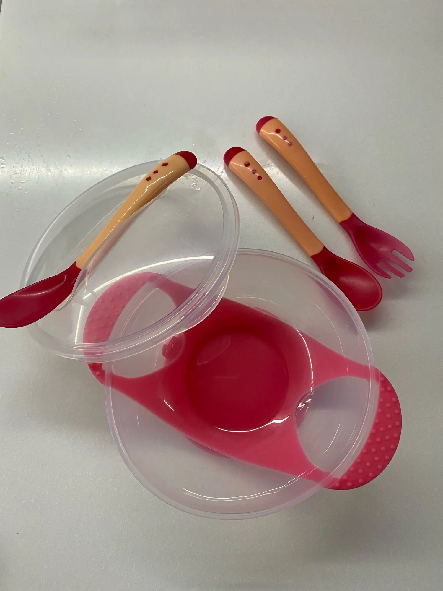 Набор детских мисок тренировочная миска с ложкой, чувствительной к температуре, Набор обучающих блюд на присоске для детей тренировочные столовые приборы