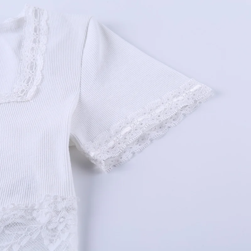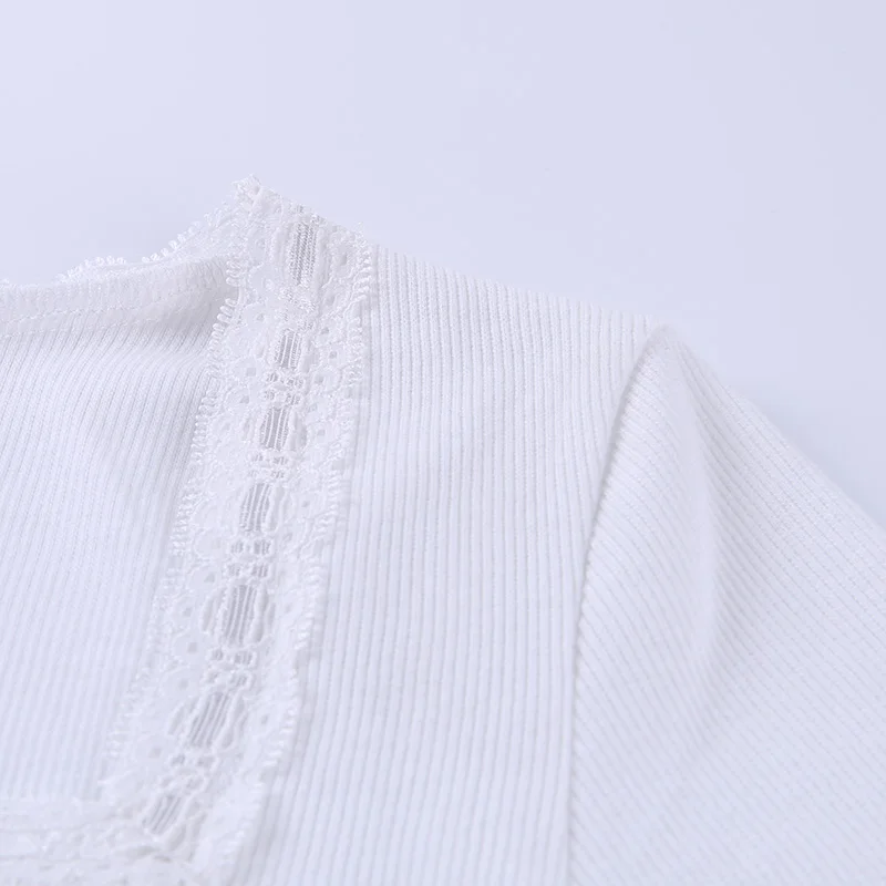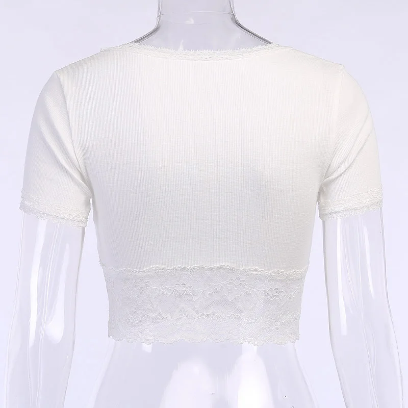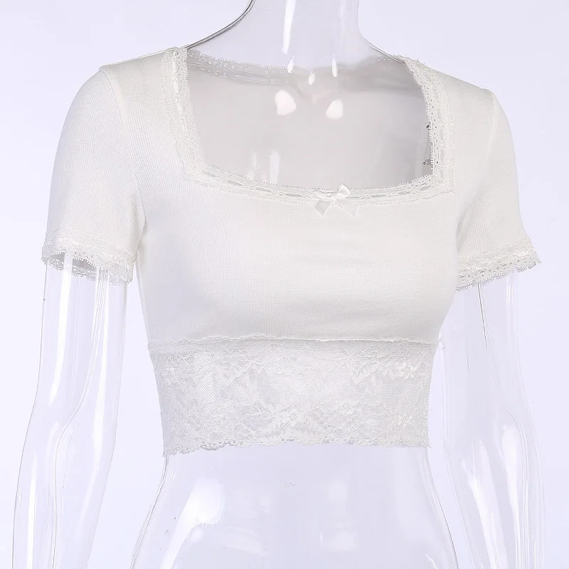 Женская футболка InstaHot, с кружевным боковым квадратным воротником, с коротким рукавом