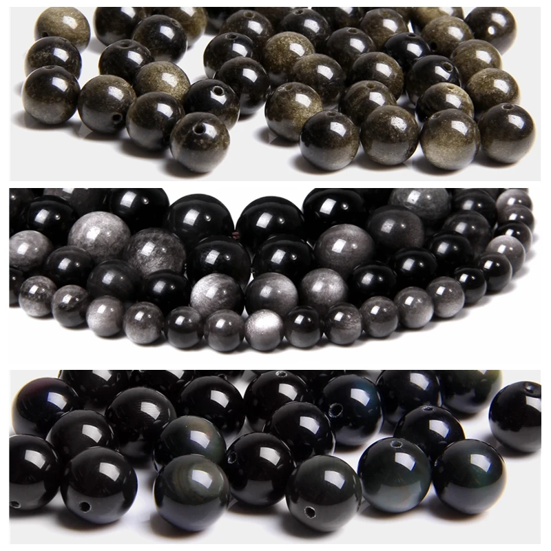 Бусины из черного и золотого обсидиана для изготовления ювелирных изделий