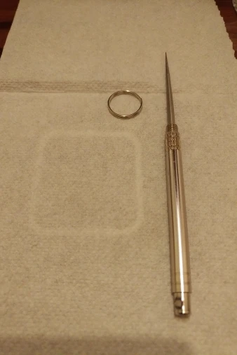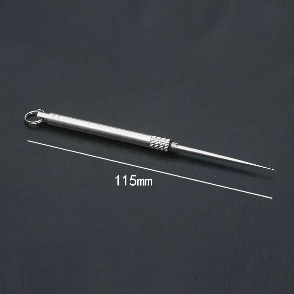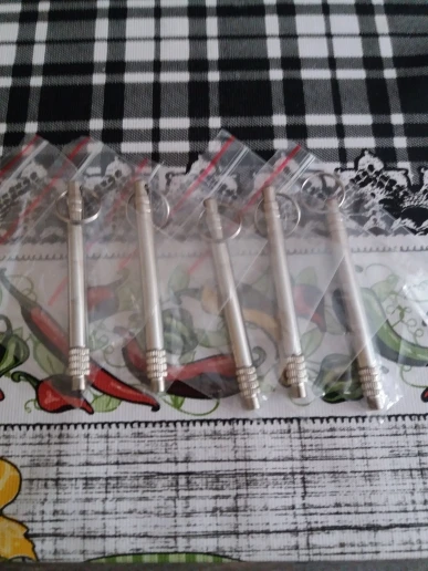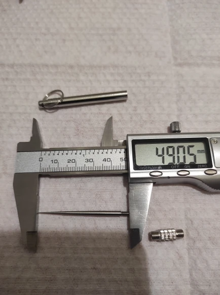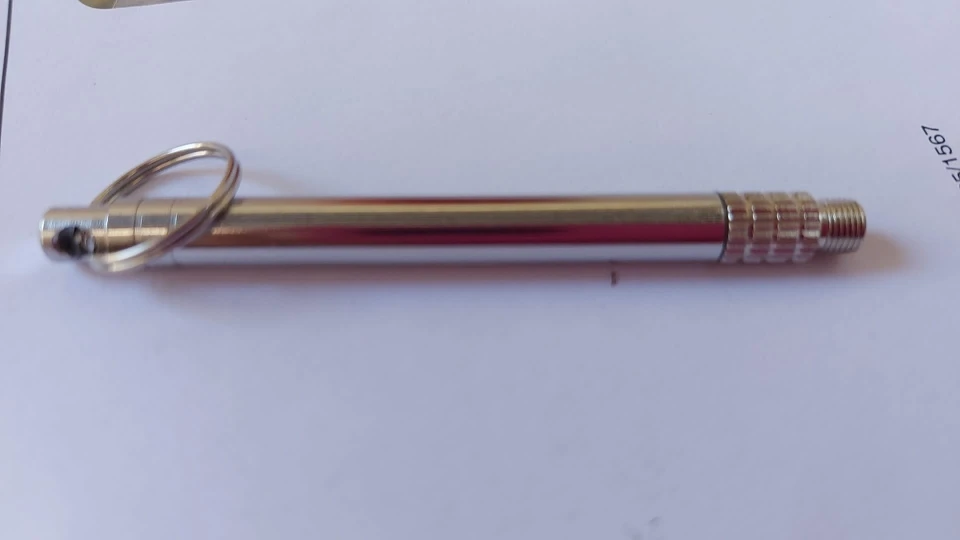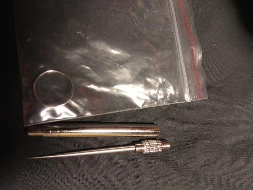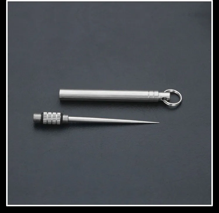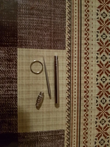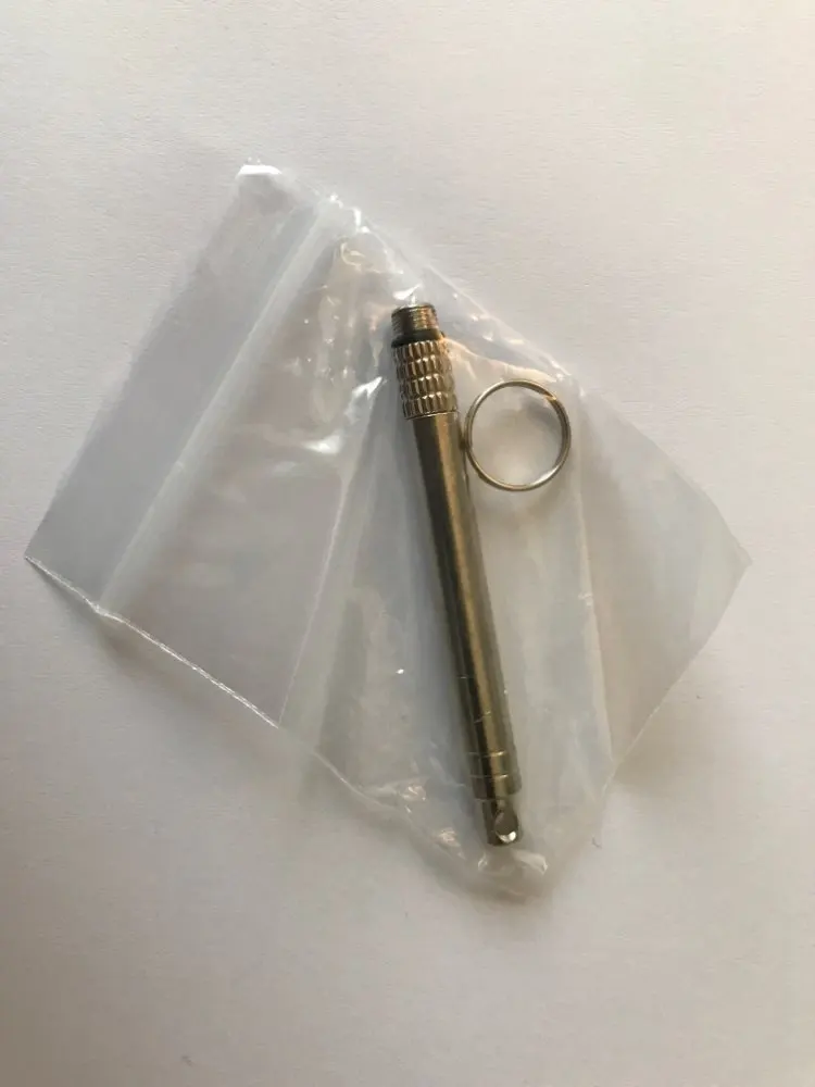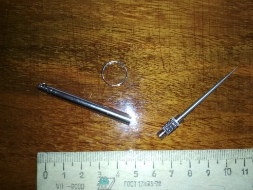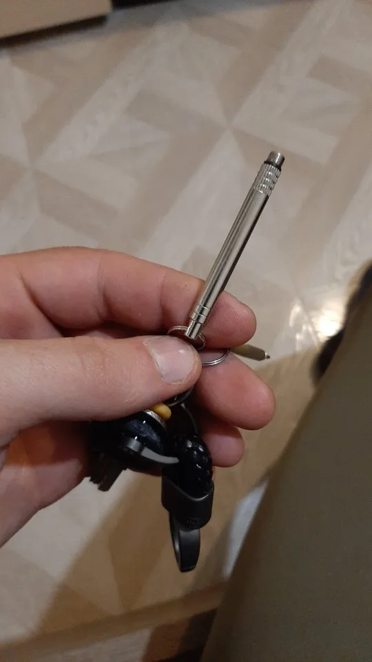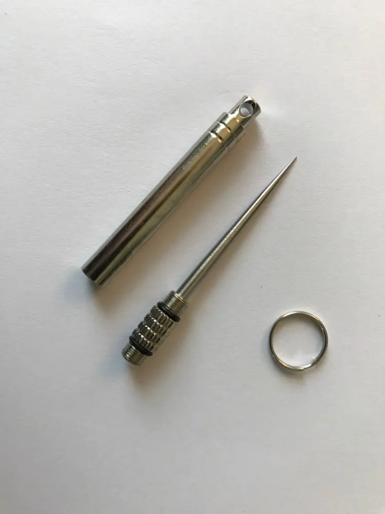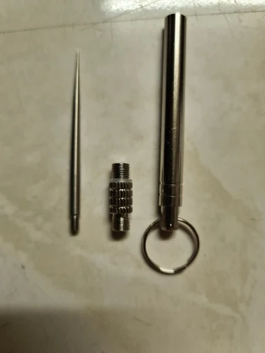 По весу все-таки на титан не похоже, да и на вид... Внешняя трубка более блестящая и скользкая, чем выглядит на фото. Ко мне приехало и одной уплотнительной резинкой из двух. В остальном отличное ковыряло в дорожный ремнабор. Само шило тоже откручивается, можно использовать футляр для какой-нибудь другой мелочи.