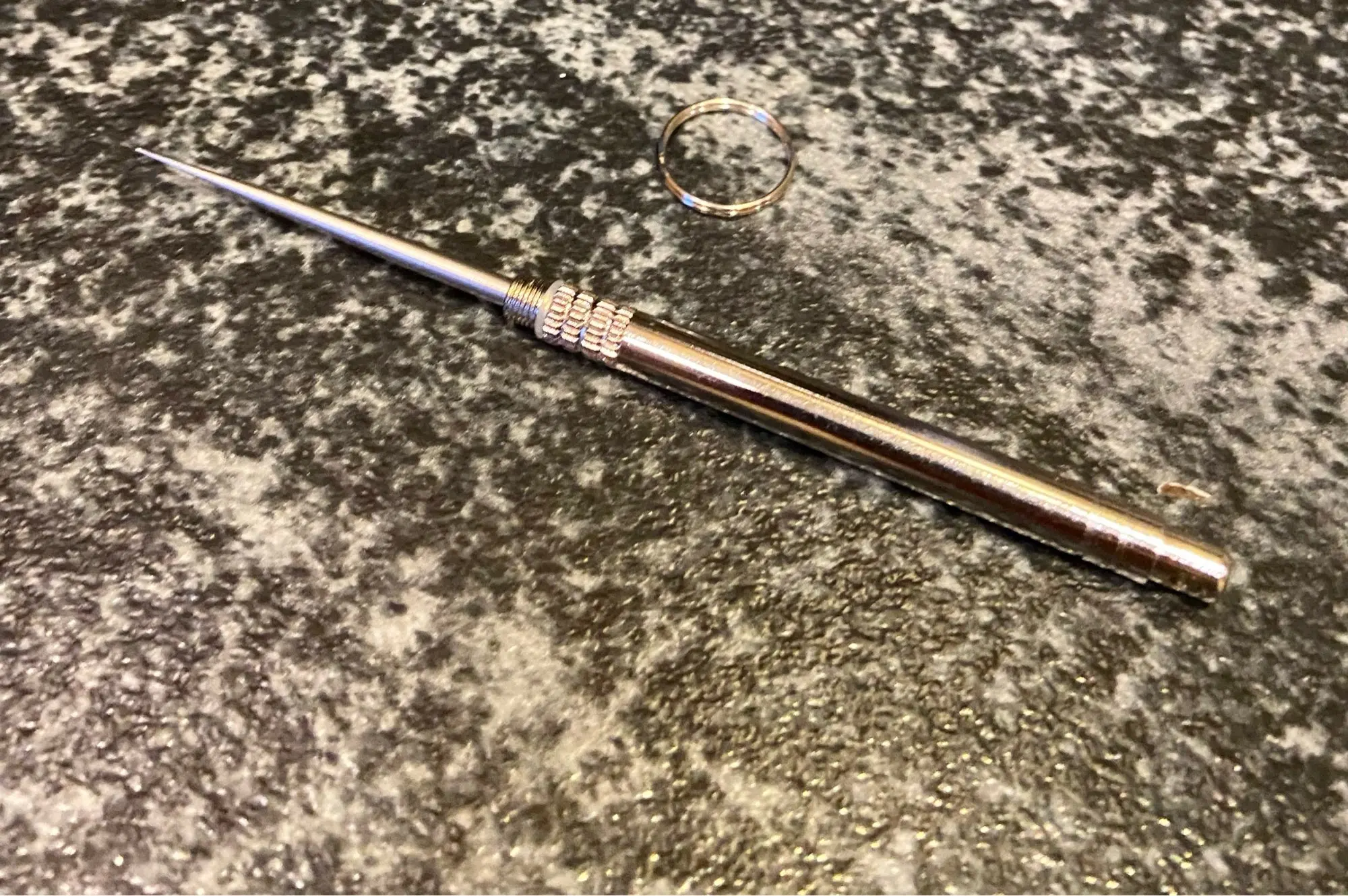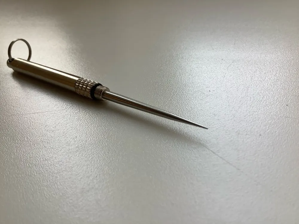 Игла полая и не такая острая, как я ожидала. Это довольно хорошо, но я думал, что эту вещь можно использовать как awl, она работает только в этой роли для довольно легких вещей. Это еще один инструмент, но его нет в моем коротком списке вещей «должен покупать».