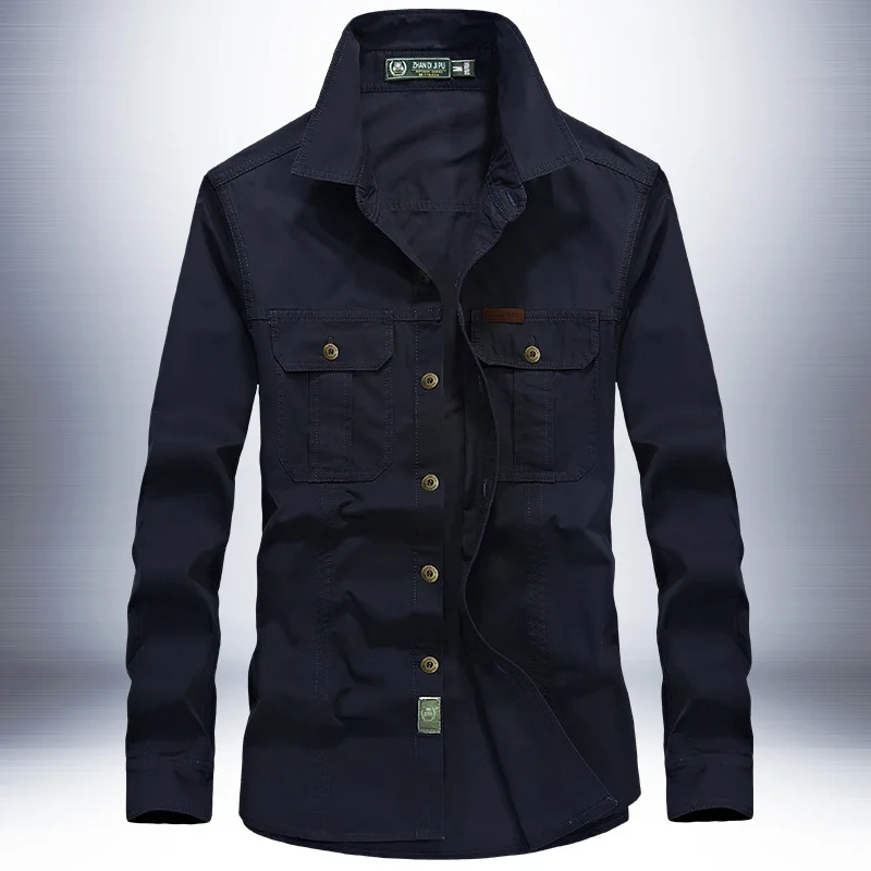Новейший дизайн, Мужская Уличная приталенная рубашка-карго из 100% хлопка, стирающаяся, с длинным рукавом, военные тактические мужские рубашки