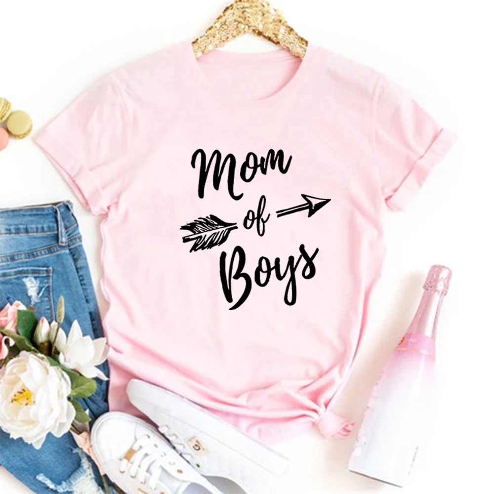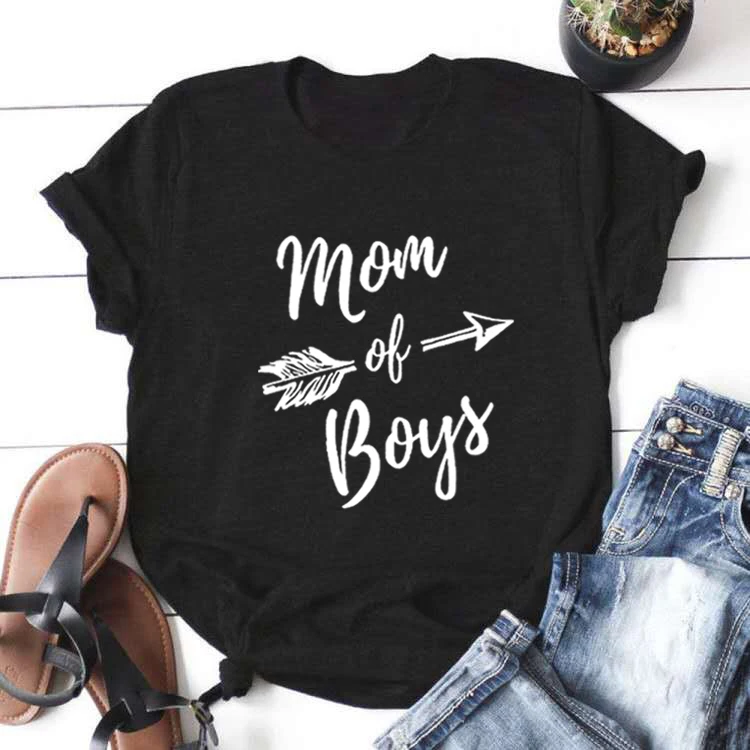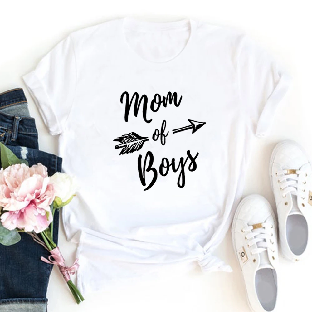 Футболка женская с круглым вырезом и принтом Мама мальчиков