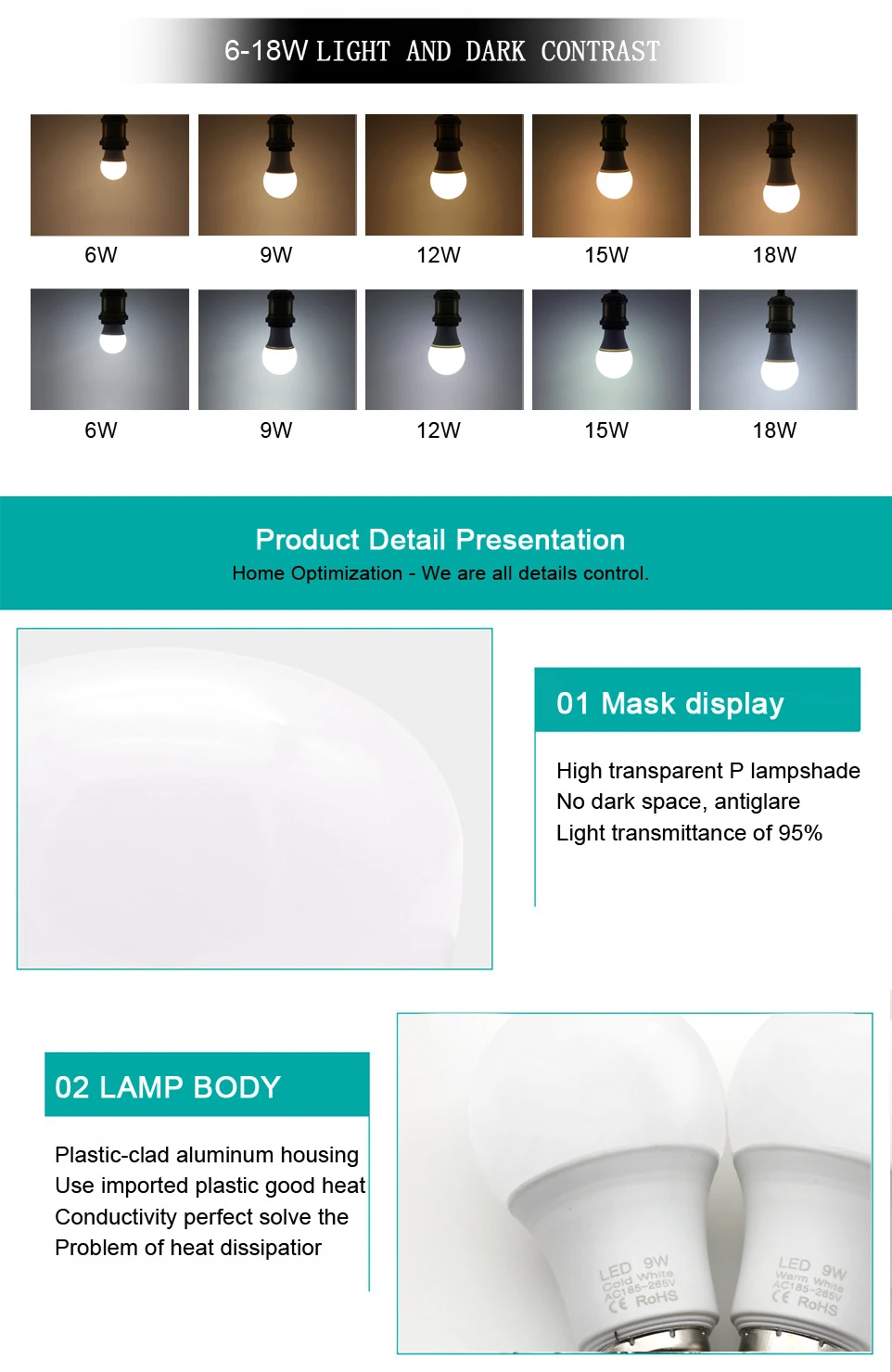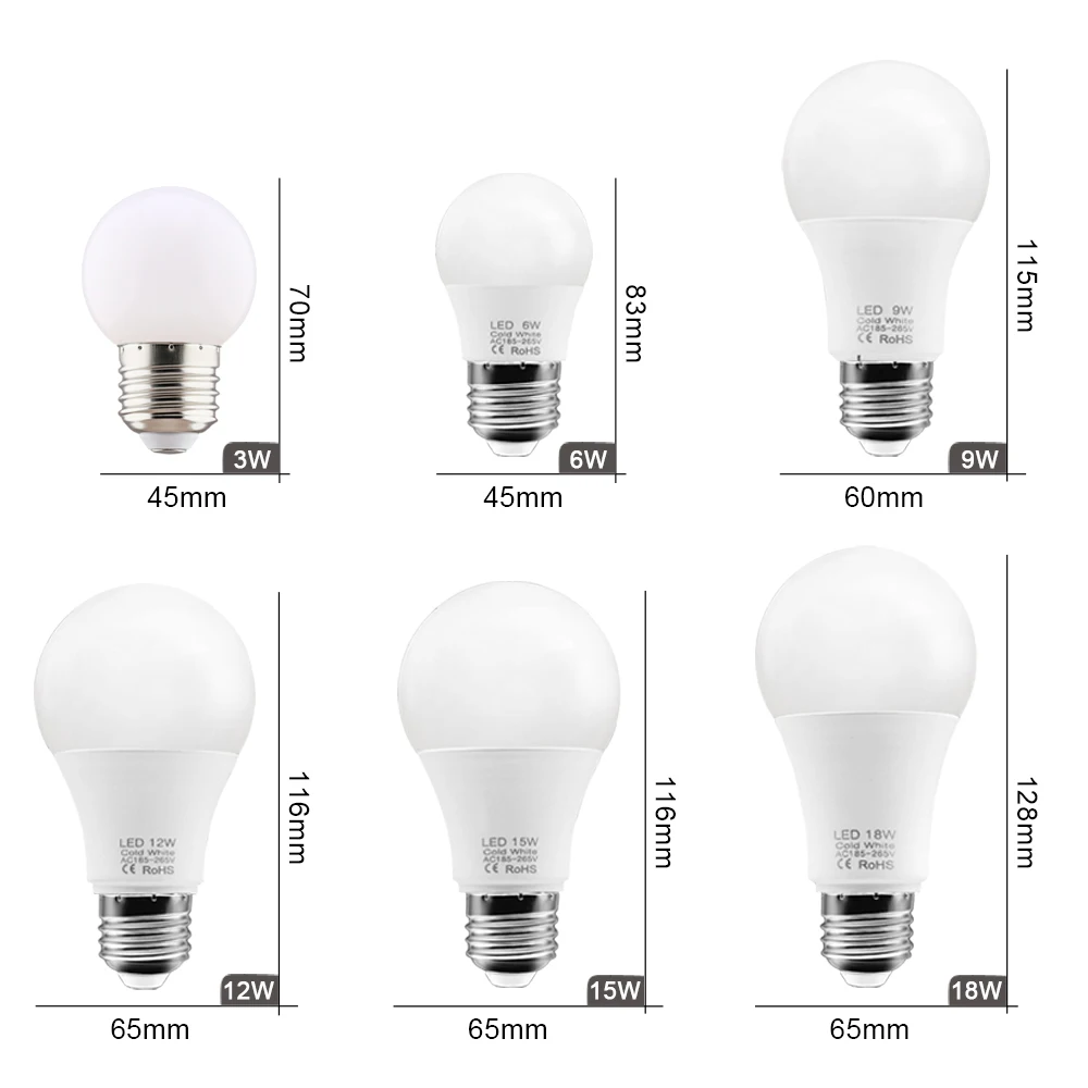 3 шт. Светодиодная лампа E27 светодиодная лампа 3 Вт 6 Вт 9 Вт 12 Вт 15 Вт 18 Вт AC 220 В лампочка Холодный теплый белый лампада Светодиодный прожектор Bombilla домашний декор