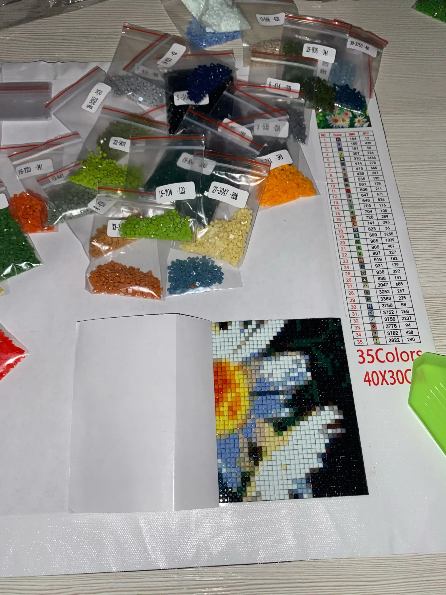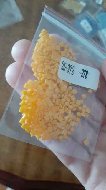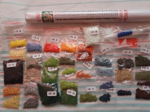 Хороший набор. Каждый цвет упакован в отдельный пакет и пронумерован,очень удобно.На холст алмазы приклейваются сразу не надо мучиться. Всё соответствует описанию, спасибо.