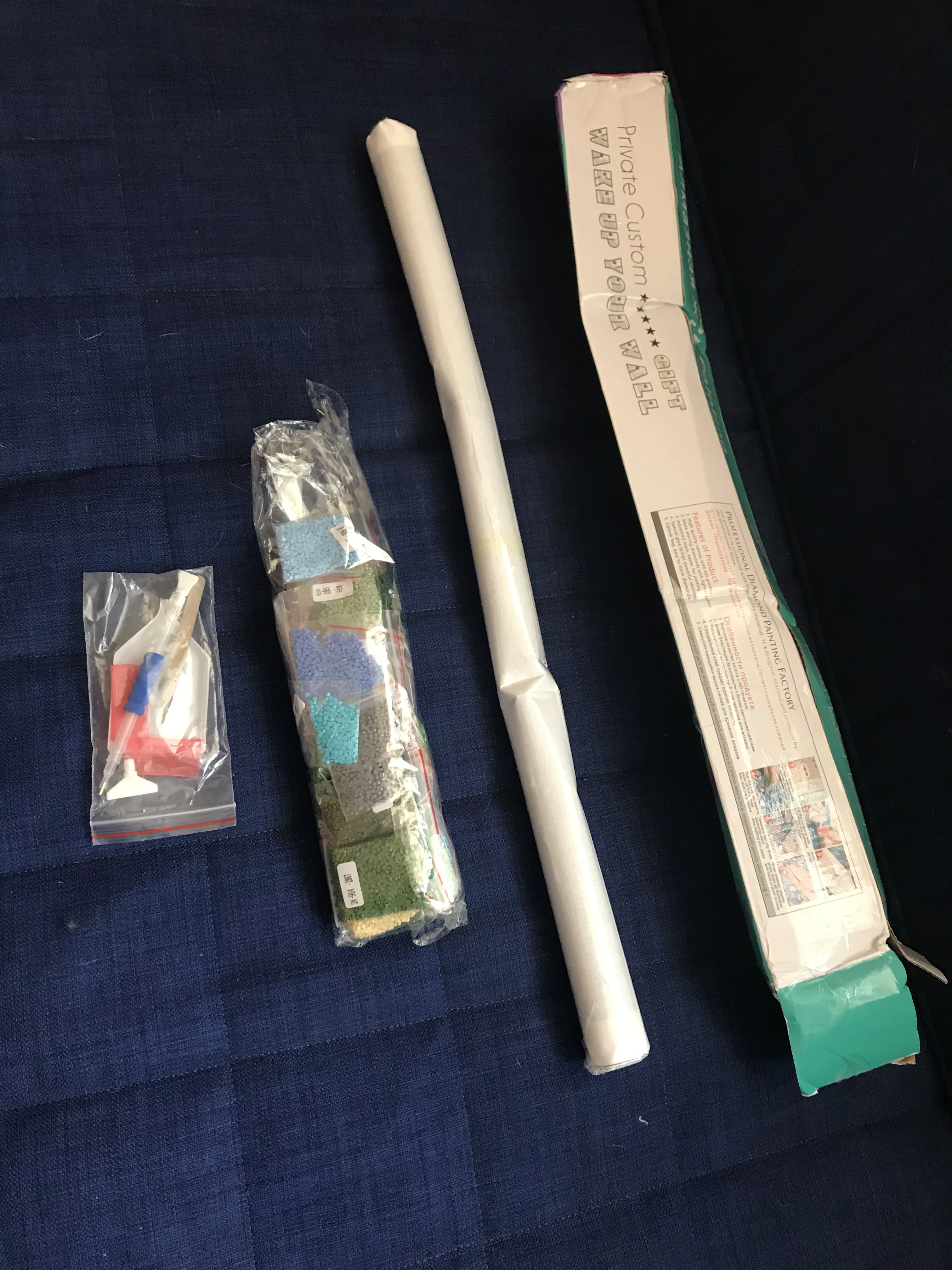 Внешне всё выглядит хорошо, картина намотана на валик и не помялась. Пока не открывала, т.к. на подарок.