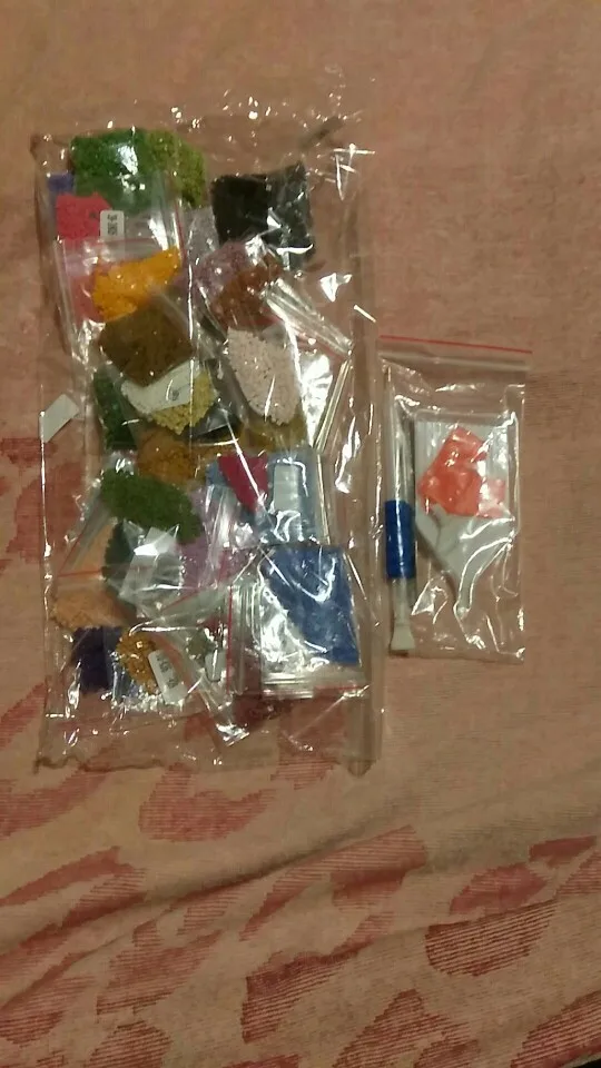 Посылка пришла за три недели. Все хорошо упаковано, целое. Алмазики в зиппакетиках, что очень удобно. К покупке рекомендую. Продавцу большое спасибо.