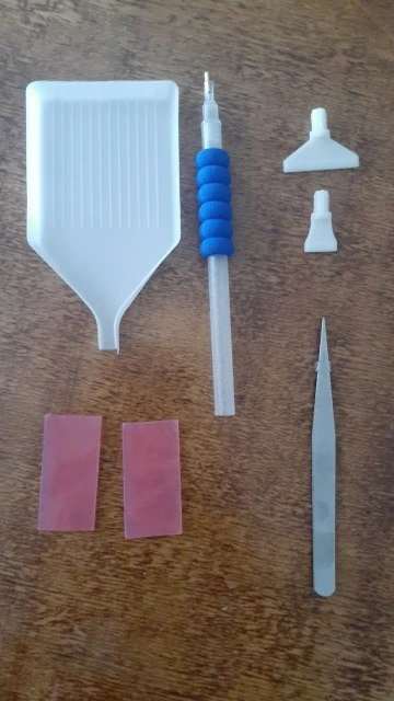 алмазная вышивка пришла быстро, за недели две. всё супер, в комплекте есть пинцет, ручка и клей для ручки. также ванночка для страз. качество супер. возможно потом прикреплю фото готовой работы. рекомендую этот магазин товаров для покупок