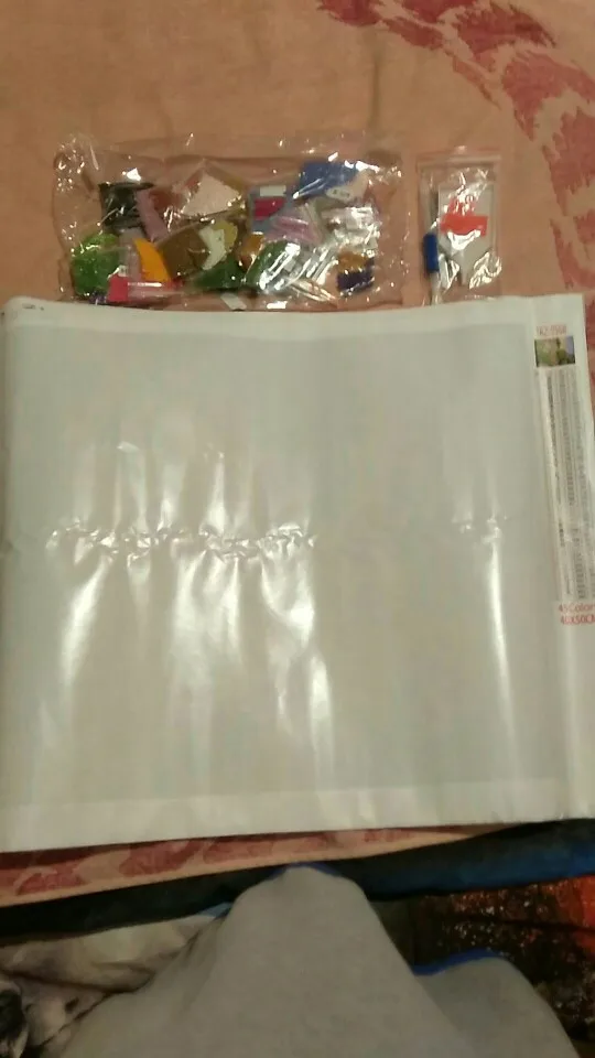 Посылка пришла недели через 2-3, в пупырчатом пакете, но не помялась, холст намотан на валик. Размер соответствует. Стразики в наборе все. Спасибо продавцу за отличную работу!)))
