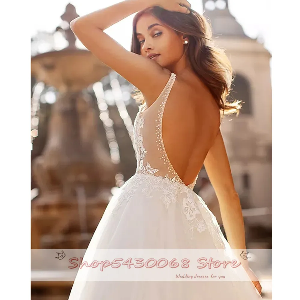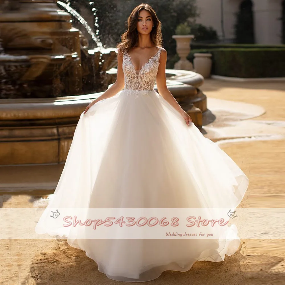 Сексуальное пляжное свадебное платье с открытой спиной в стиле бохо, свадебное платье с глубоким V-образным вырезом, Кружевная аппликация, тюлевые Свадебные платья для невесты