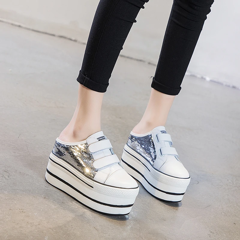 Женские туфли из натуральной кожи на высоком каблуке 10 см с блестками; Женские летние туфли на платформе и каблуке; Женская обувь из вулканизированной кожи