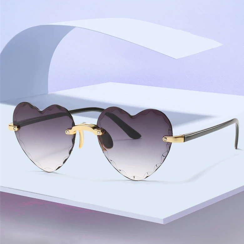 Женские солнцезащитные очки без оправы, модные солнцезащитные очки в форме сердца для женщин, винтажные милые 90s градиентные очки UV400