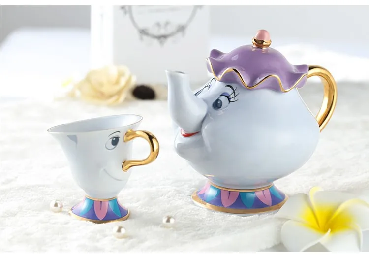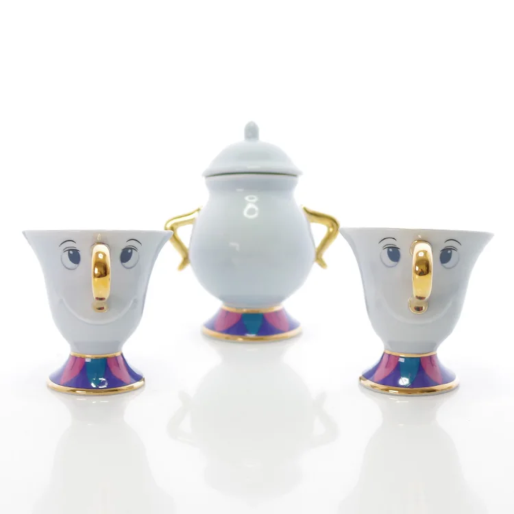 Чайный набор с мультяшным изображением красавицы и чудовища, чайный набор, чашка, горшок, сахарница, чашка, кружка, тарелка, кофейник, креативный подарок