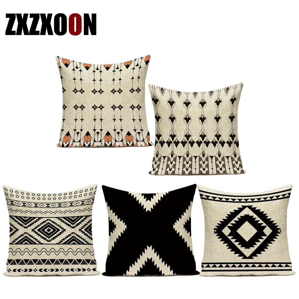 Черный, белый цвет Декоративные диванные подушки Чехол с геометриче...