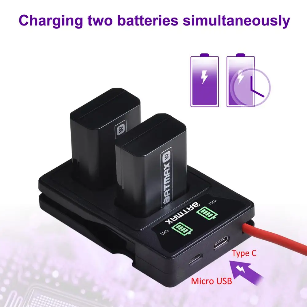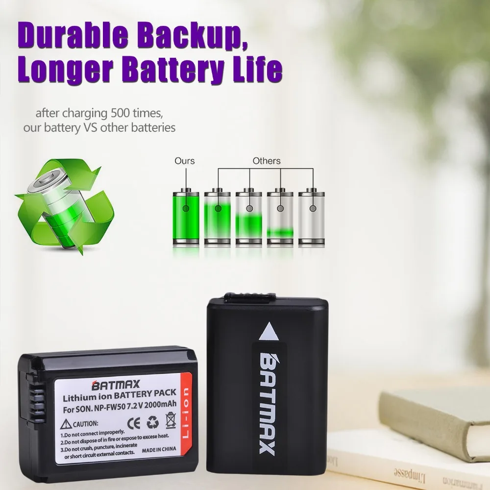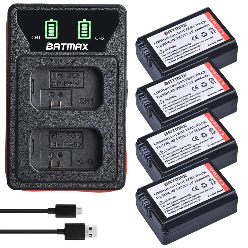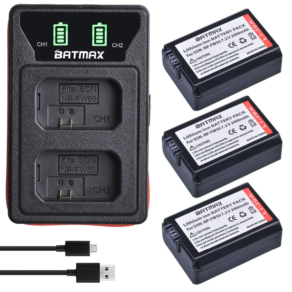Аккумулятор Batmax 2000 мАч NP-FW50 + двойное зарядное устройство со светодиодной подсветкой для Sony a37 Alpha 7 7R II 7S a7S a7R II a6000 a6400