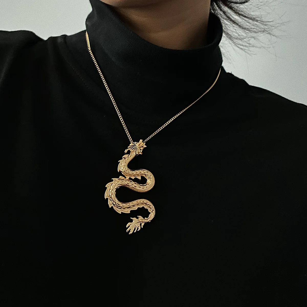 Женское колье с подвеской в виде дракона, золотистоесеребристое ожерелье-чокер, украшение-талисман, подарочная бижутерия, 2020