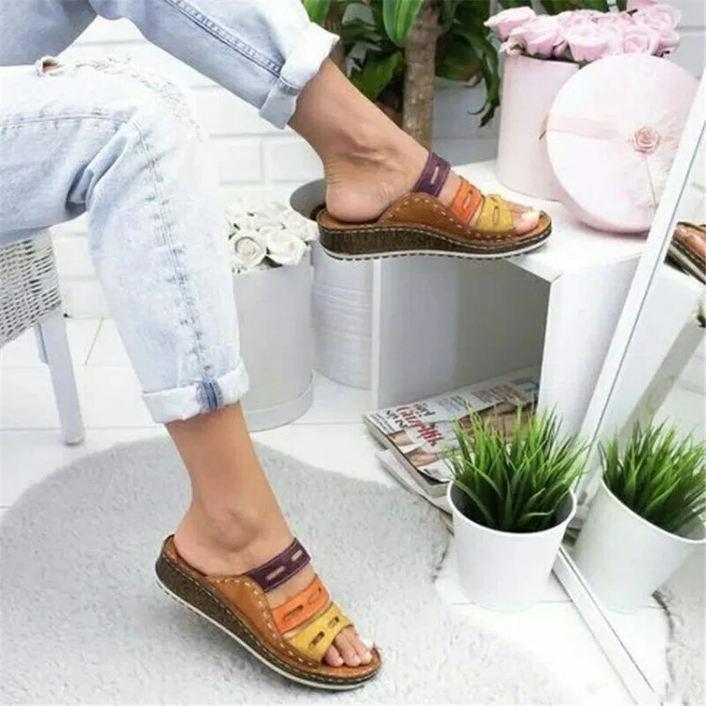 Женские тапочки на плоской подошве; Летняя обувь в винтажном стиле; Мягкие повседневные пляжные сандалии с открытым носком в стиле ретро; Модная женская обувь; 2020